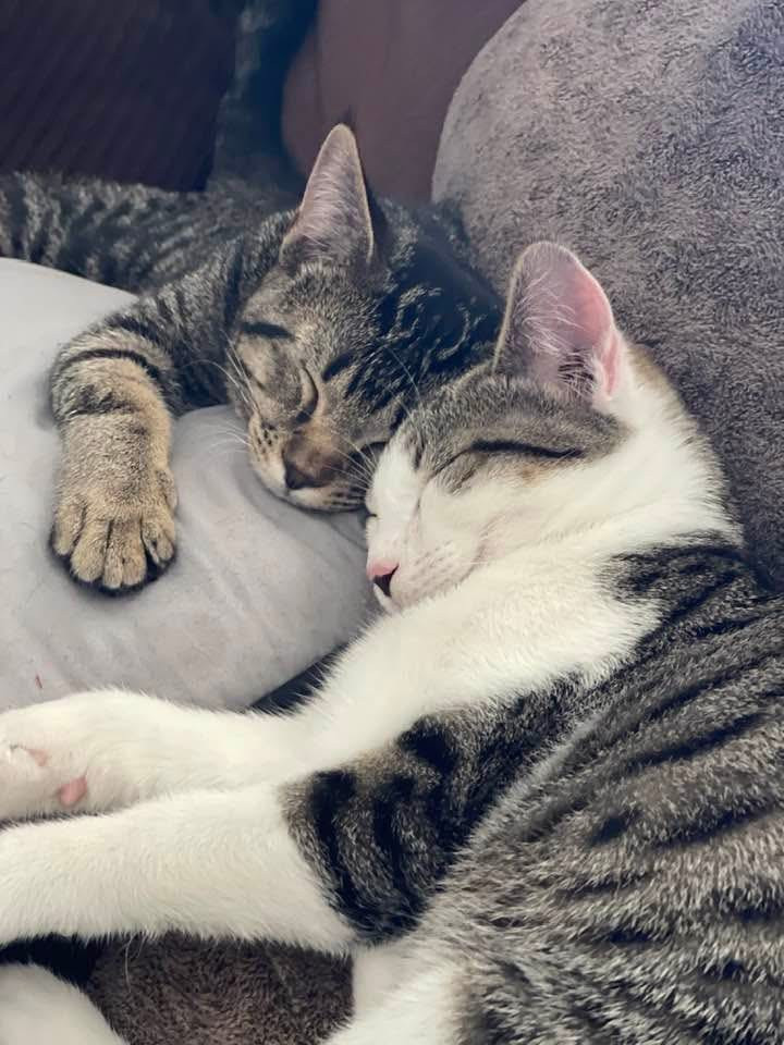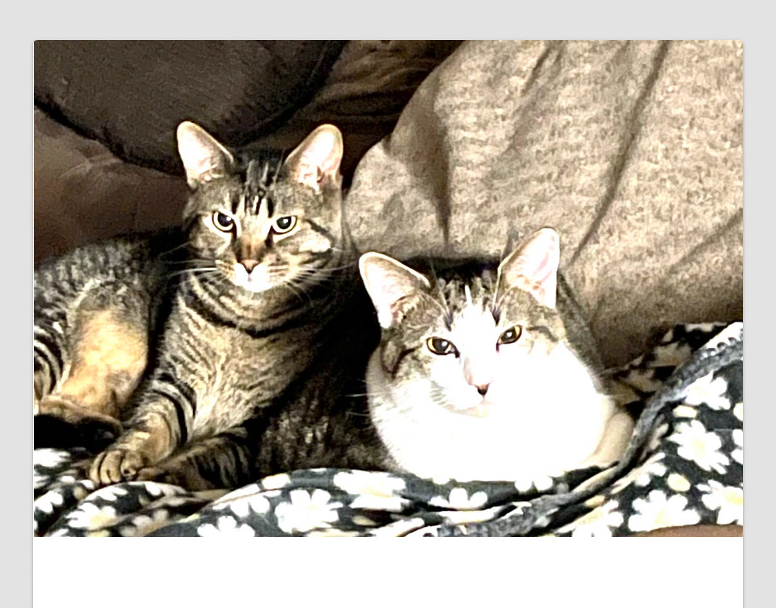 Yoda and Grogu are 3 year old males, both brothers. Both bring me joy and happiness. Yoda is an aloof. Grogu is a love bug.