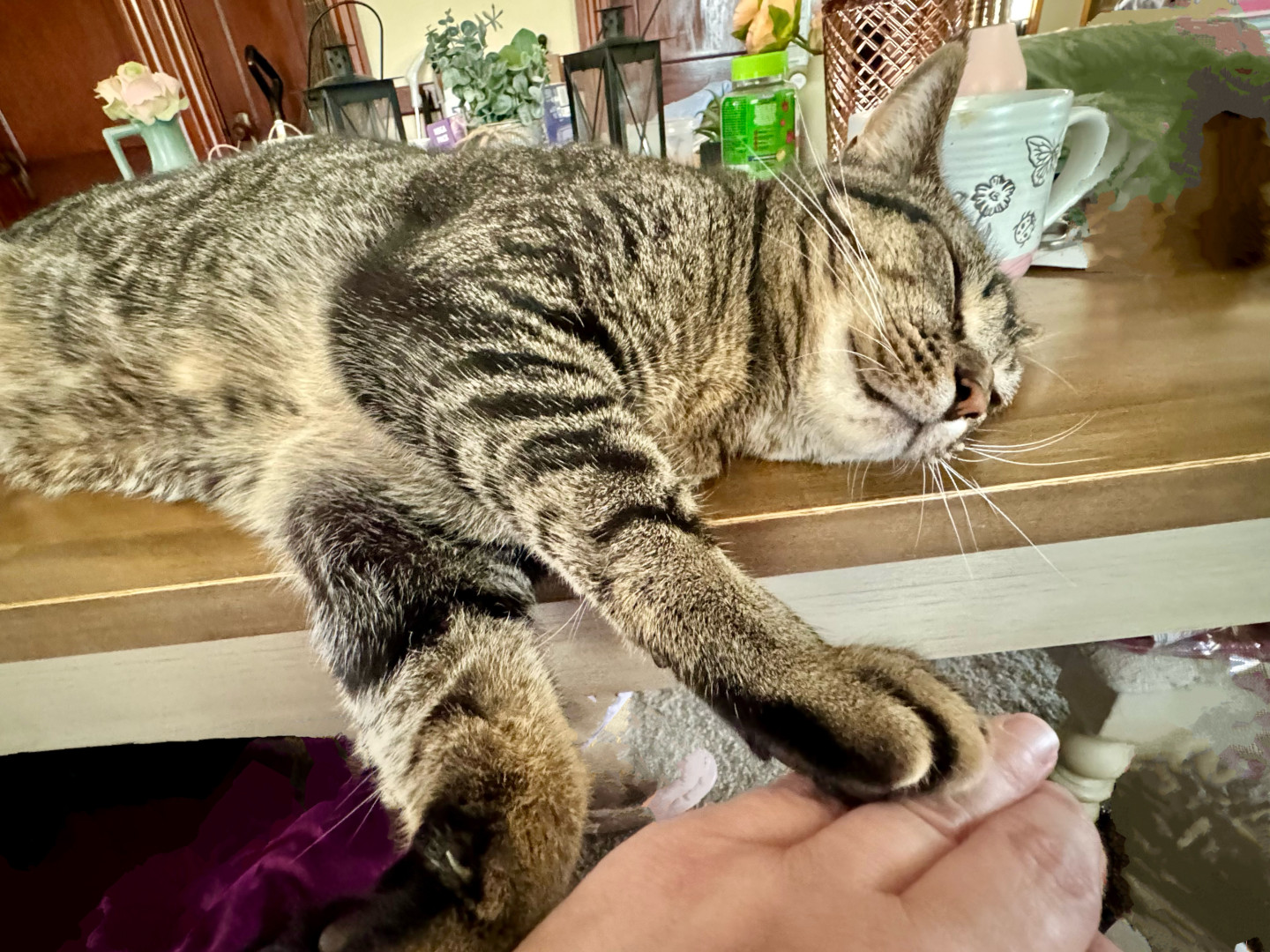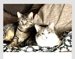 These two are my world. I got them thinking ok my son is going to be leaving; I needed something to help me cope. Well I had to leave instead to leave the home to my son and his fiance. I could not take my two cats. I didn’t want to take them from the only home they knew. I frequent them daily, in person or on FaceTime. They know it’s me, they know my voice they do come running if I call them. lol. My son is Autistic so lastly I didn’t want to take them from my son either. So WIN WIN!