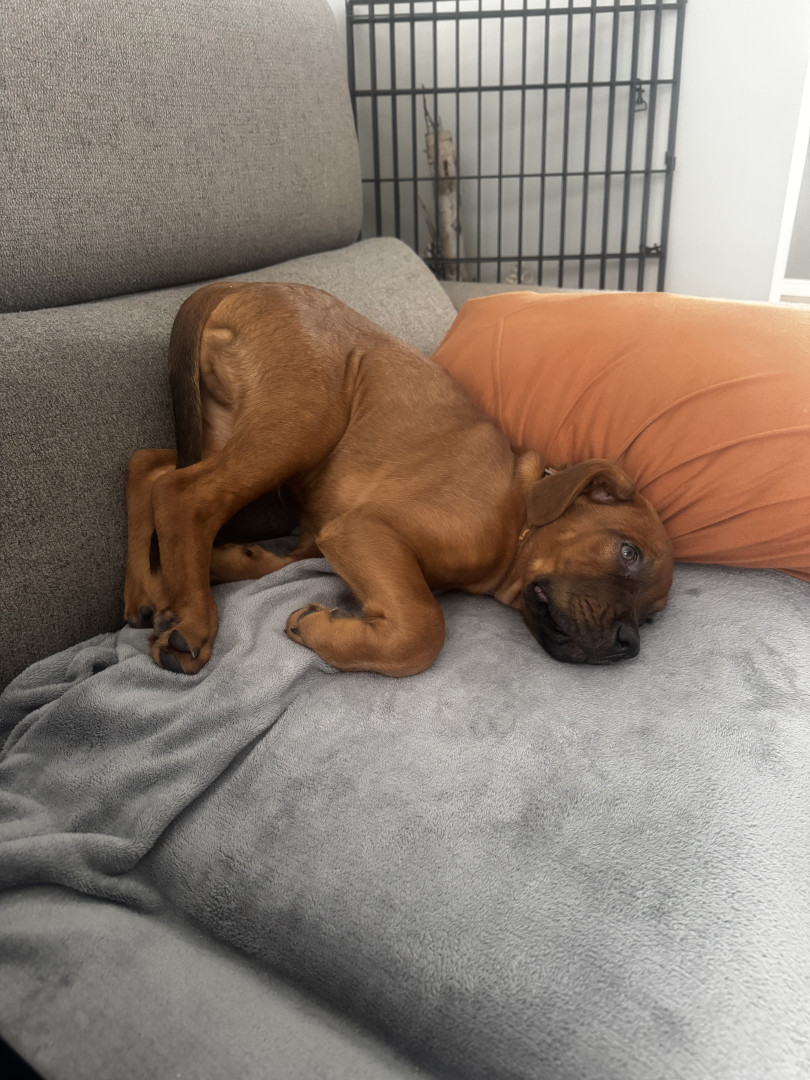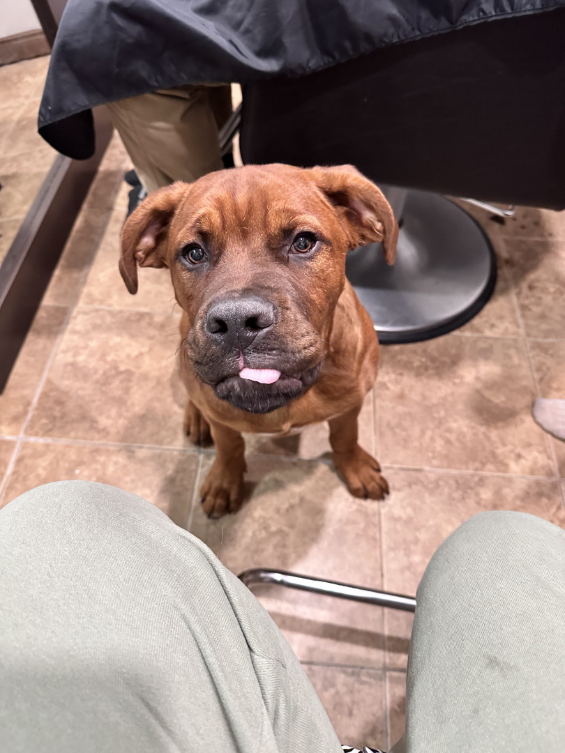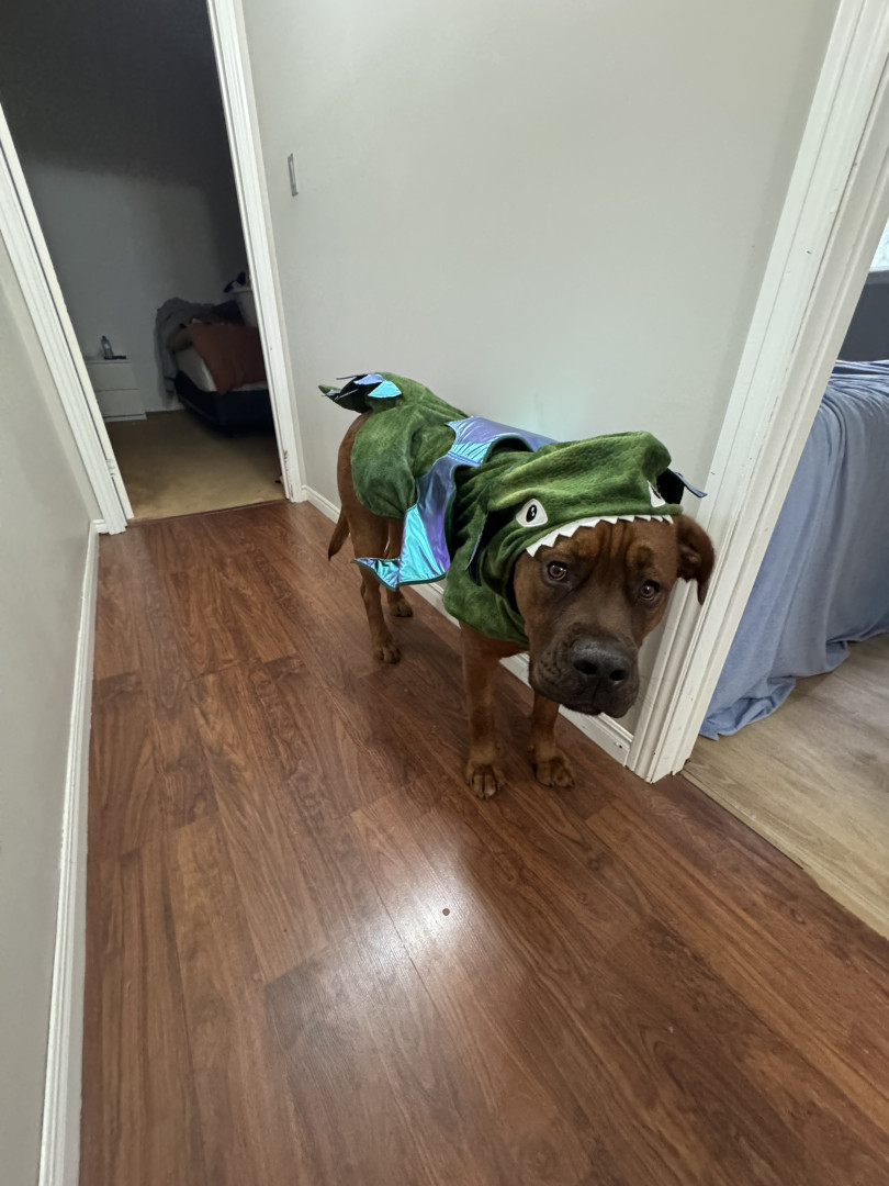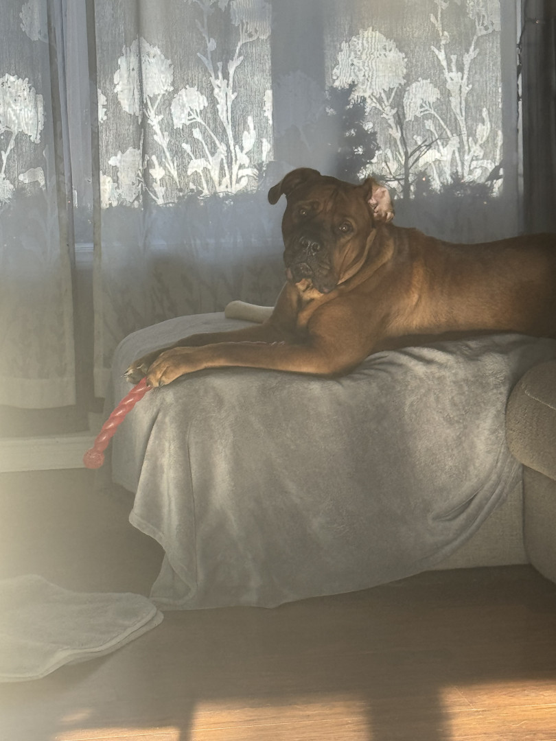 He is goofy, silly, playful, a little neurotic but extremely loving. He’s a great protector (and snuggler) and chaser of squirrels!haha
