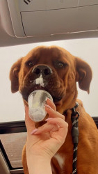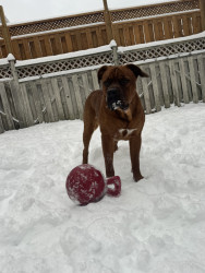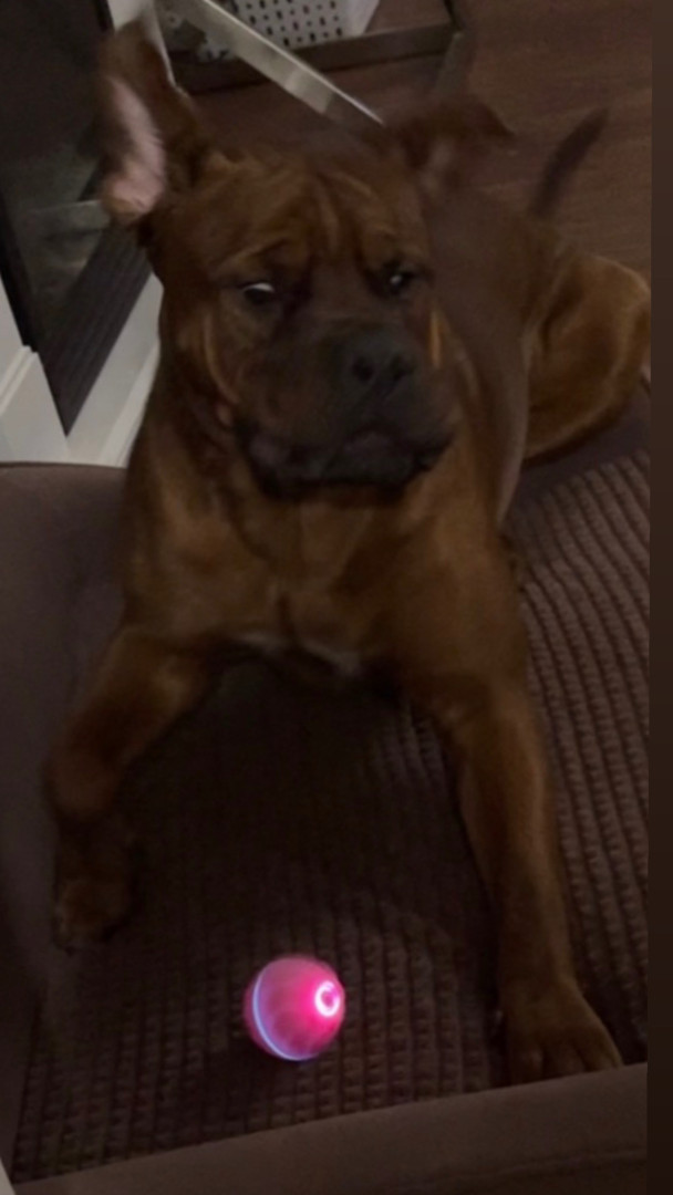 His favourite toy is his horse ball and he LOVES his frozen blueberries 🫐