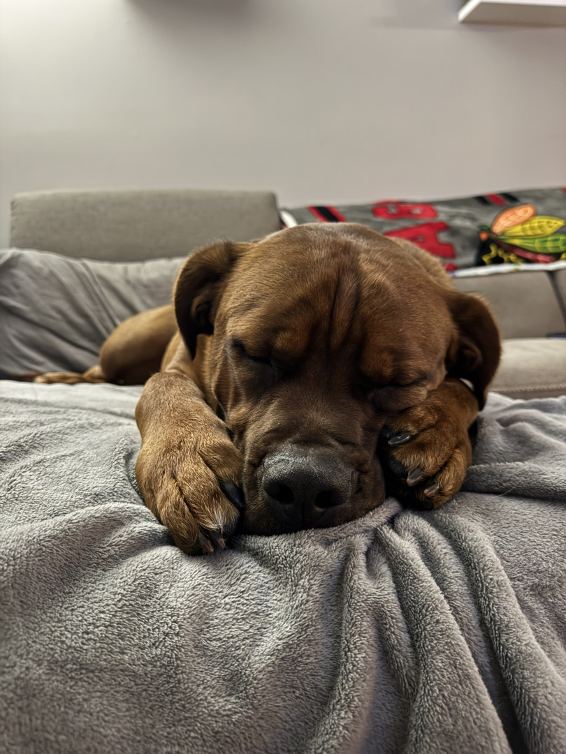 He has to have one of the cutest faces I’ve ever seen on a dog, with his wrinkles and expressive eyebrows his personality really shines through in his looks and mannerisms. He really is the funniest, best dog. Coming to us after a great loss of our other two big guys he has filled our home with so much love and his angel wings on his chest are a true representation of the angel-like impact he’s brought to us. This title and prize would fill his toy box and treat corner with endless options :)