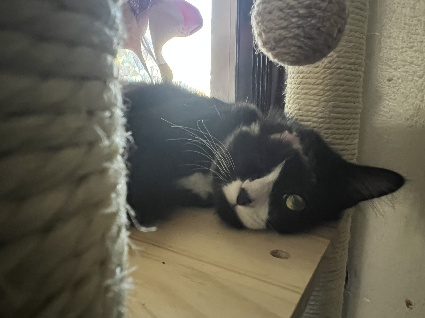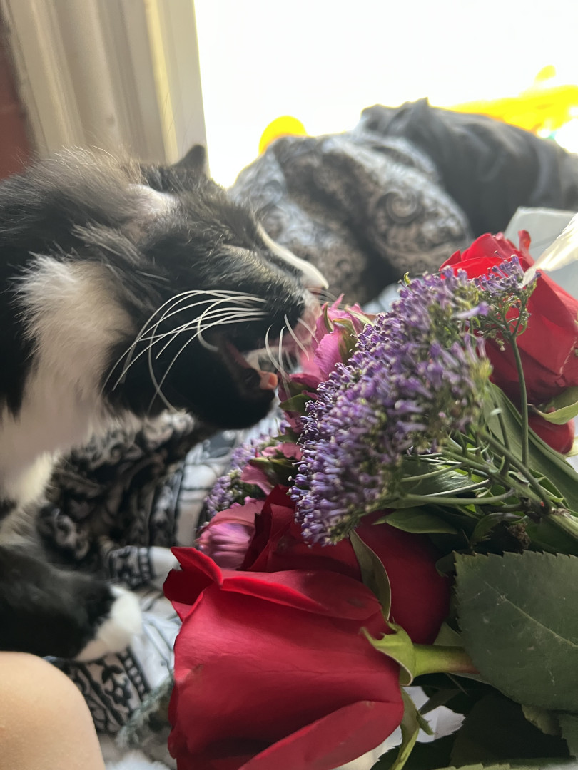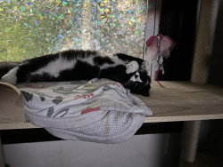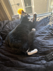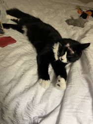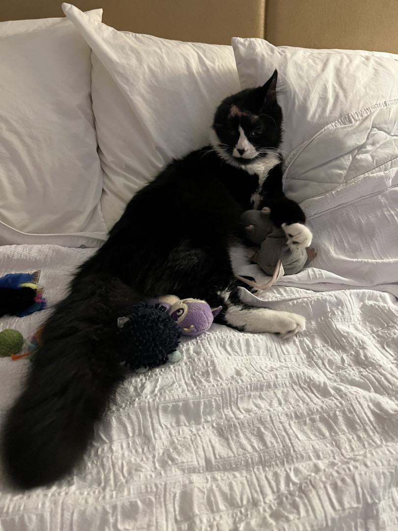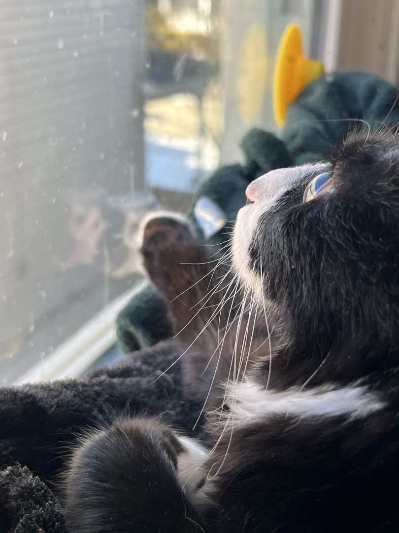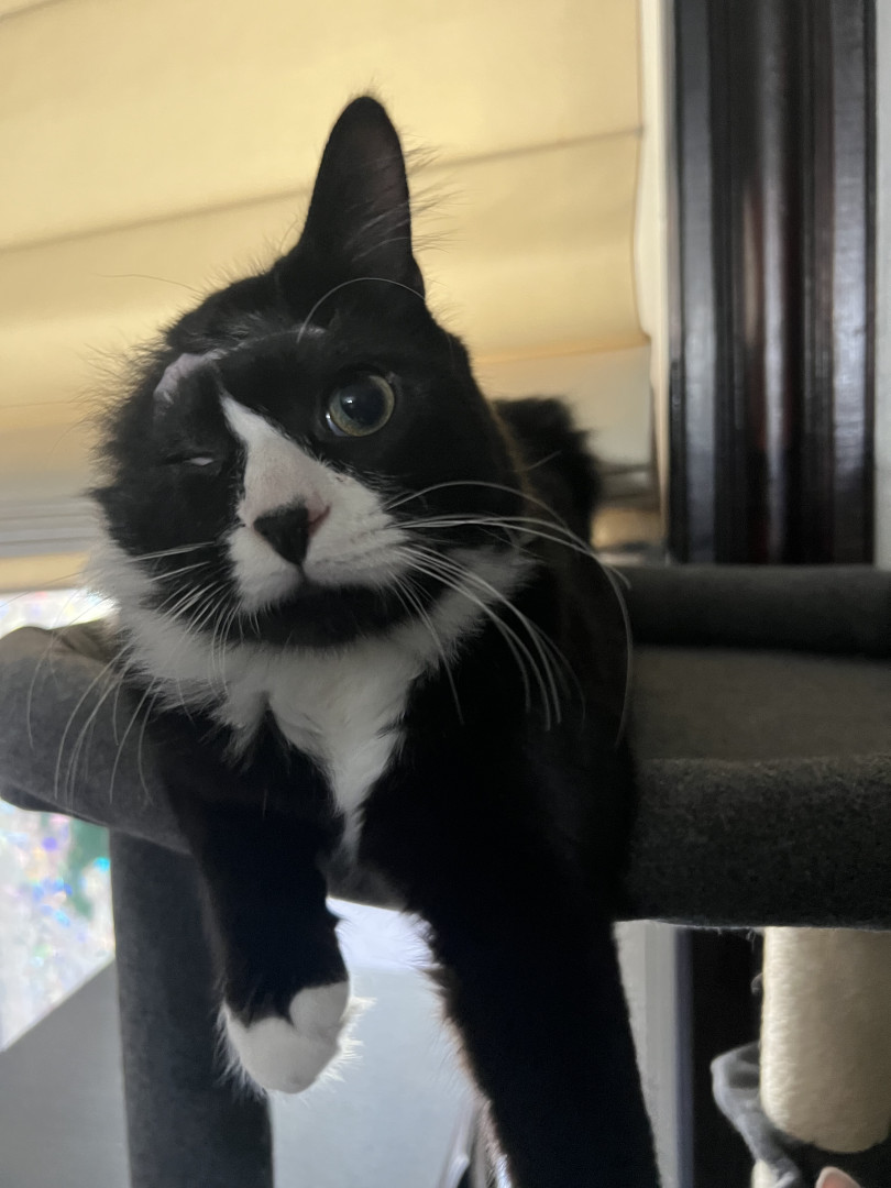 He is so silly and light hearted. He has the most unique playful personality that really makes you watch in admiration wondering what is going on in that beautiful brain. He is a friend to everyone he meets. Grub gives the most intense cuddles and kisses. I love to wake up to him sprawled out in my chest face on face. He truly is my son and doesn’t think anything different. Grub is my familiar, soul cat, best friend. He gets SO excited when I get home and lays with me all day when I’m home.