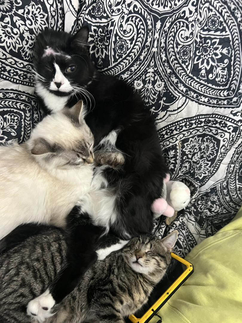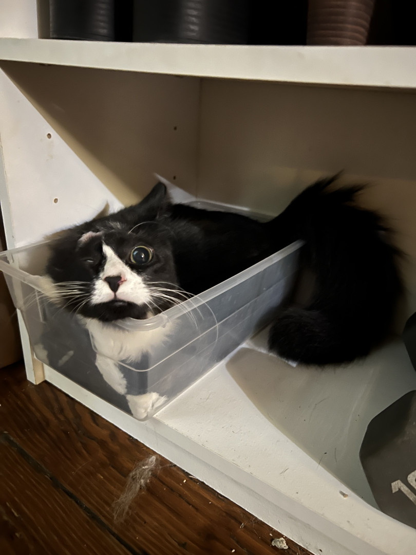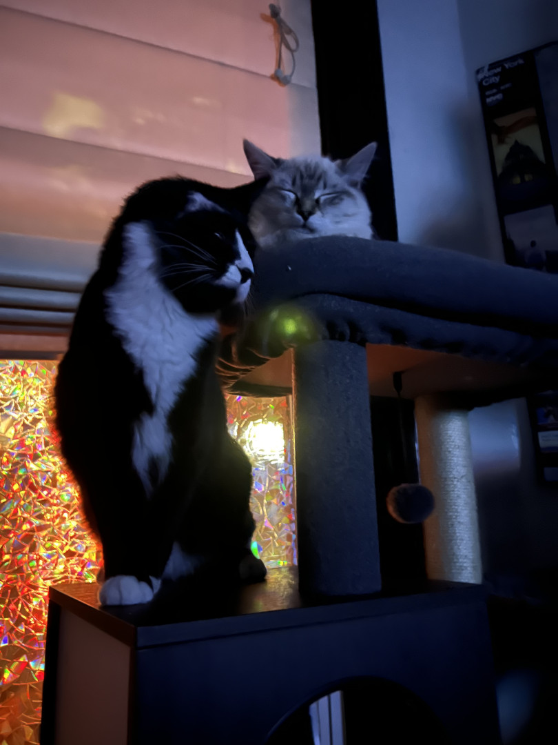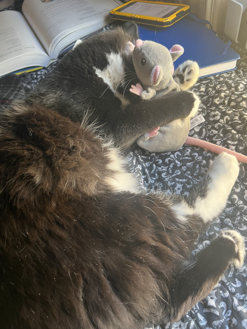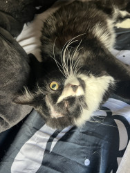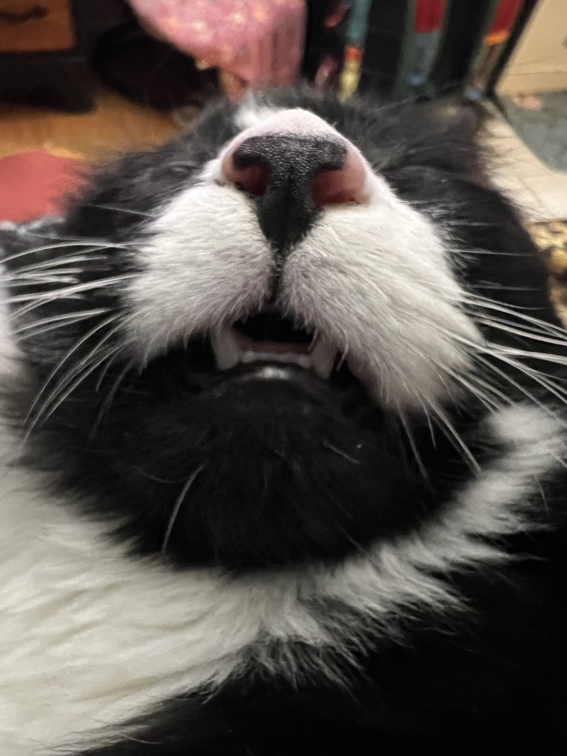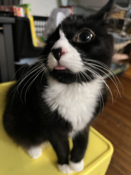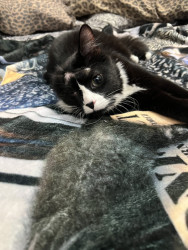 He is so silly and light hearted. He has the most unique playful personality that really makes you watch in admiration wondering what is going on in that beautiful brain. He is a friend to everyone he meets. Grub gives the most intense cuddles and kisses. I love to wake up to him sprawled out in my chest face on face. He truly is my son and doesn’t think anything different. Grub is my familiar, soul cat, best friend. He gets SO excited when I get home and lays with me all day when I’m home.