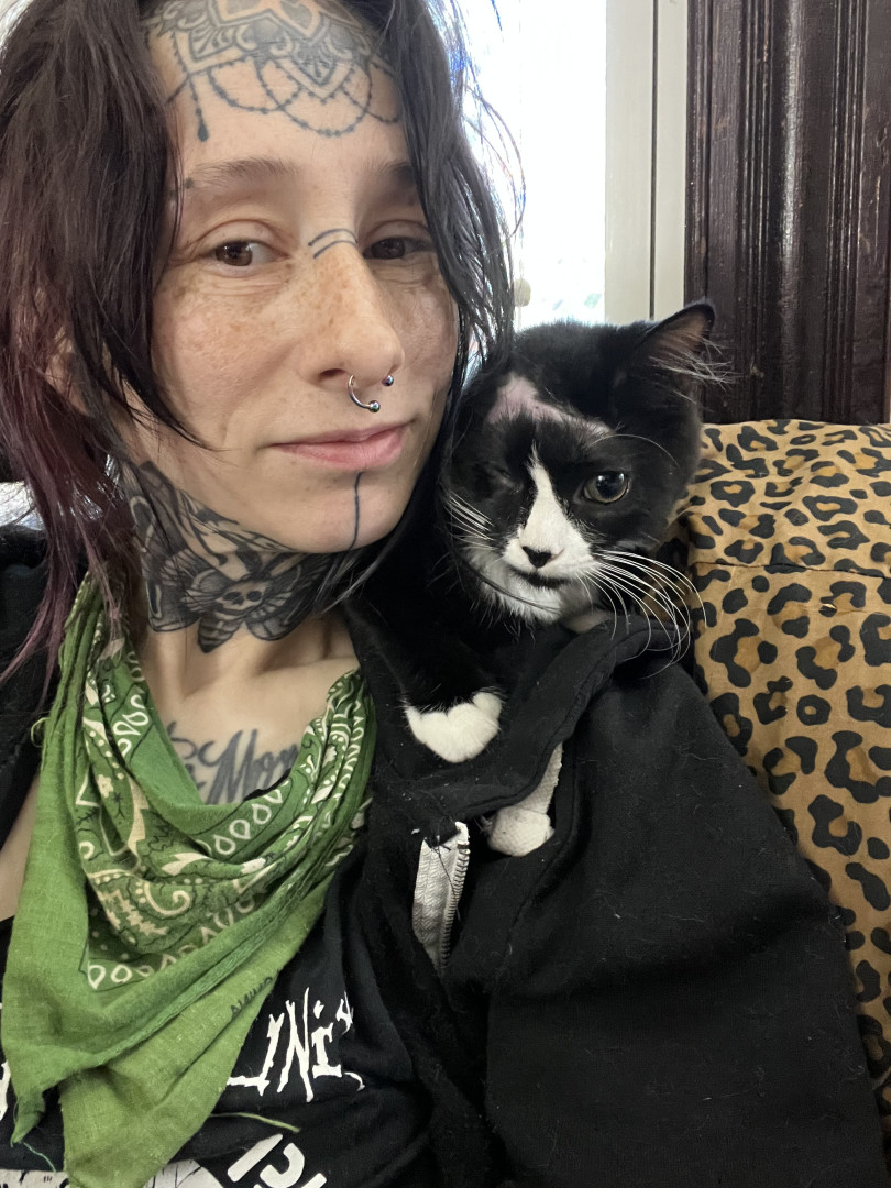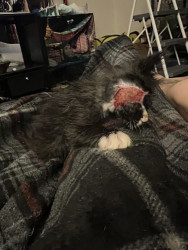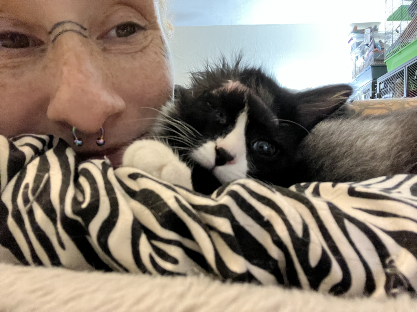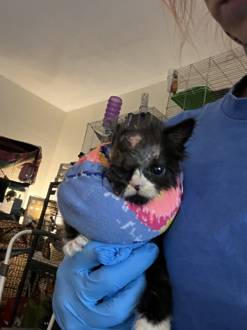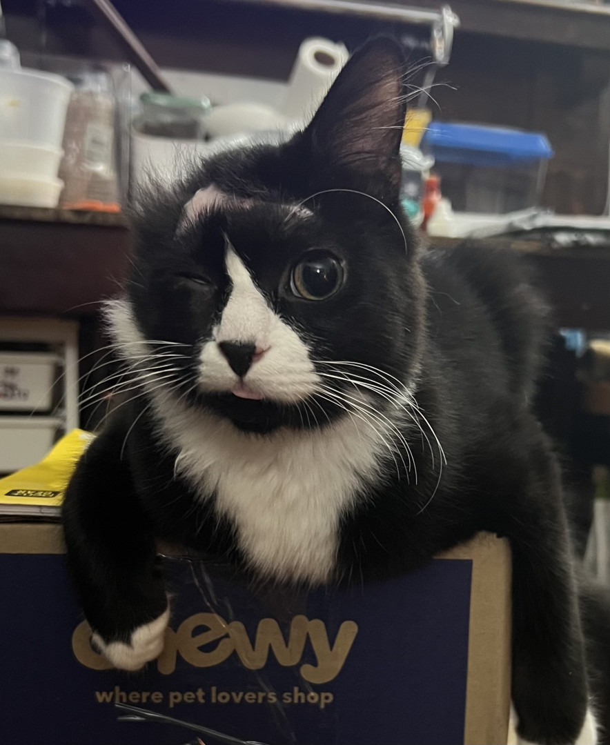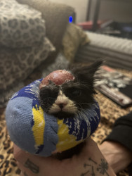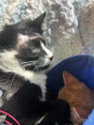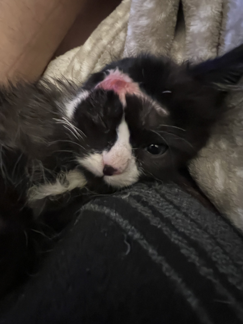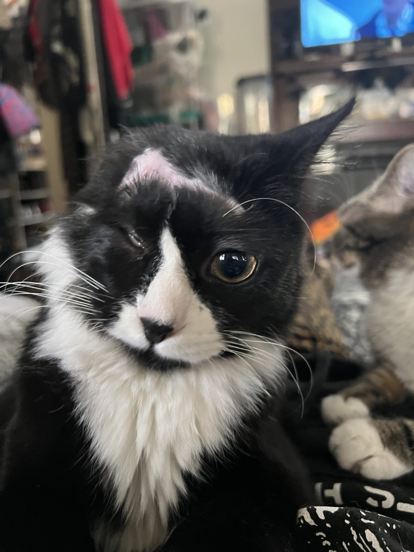 Grub came into the shelter I work at as a tiny kitten that was only 13oz with severe trauma, and skin infection causing permanent damage including loss of his eye and ear, and crushed sinus cavity, and hole in his skull. He stole my heart instantly and has really brought light to my life. Through it all he is still just a charmer and most handsome boy there ever was! He brings comfort to other kittens we foster with medical issues like him! Grub embodies everything this challenge stands for!
