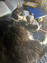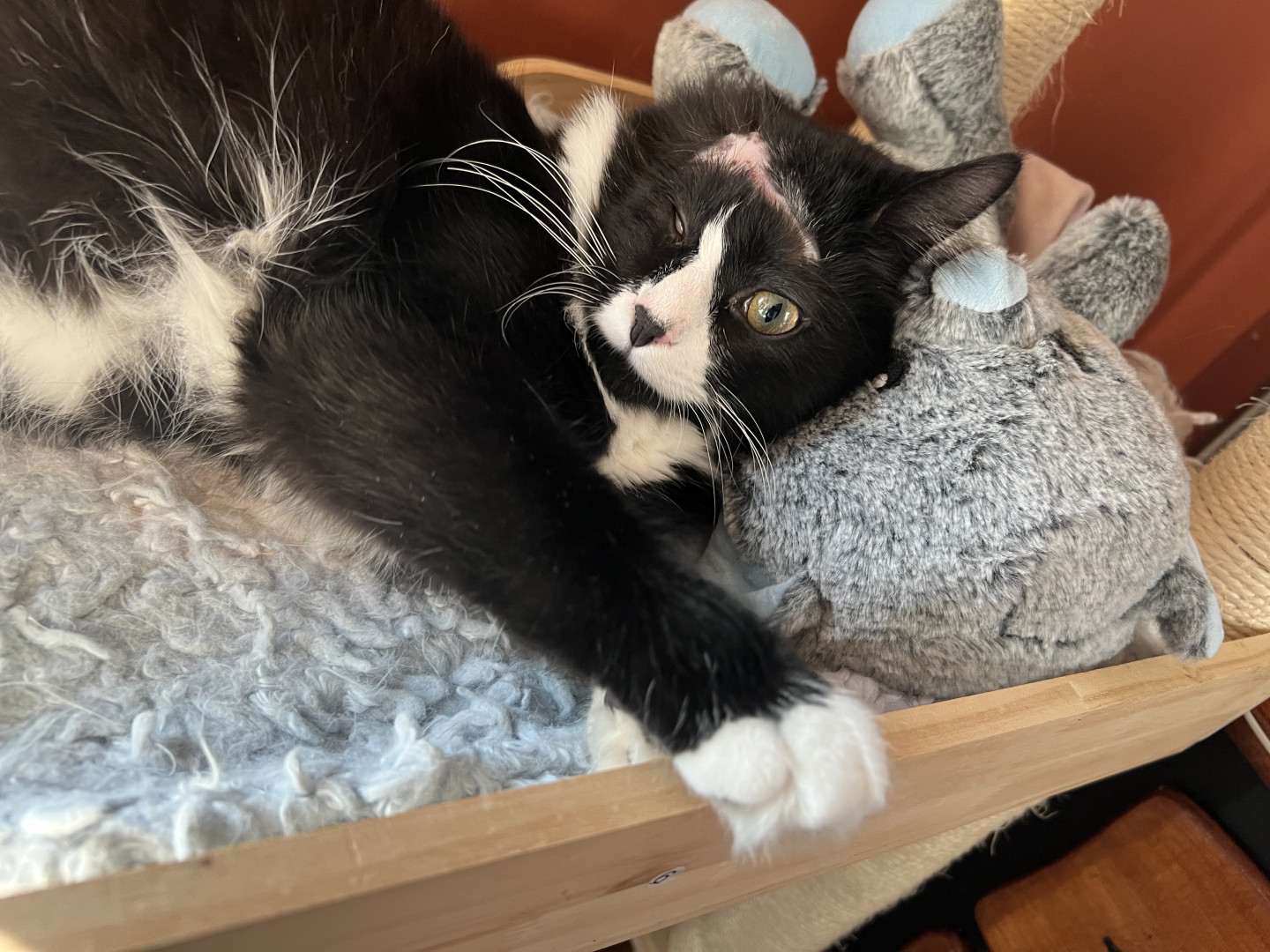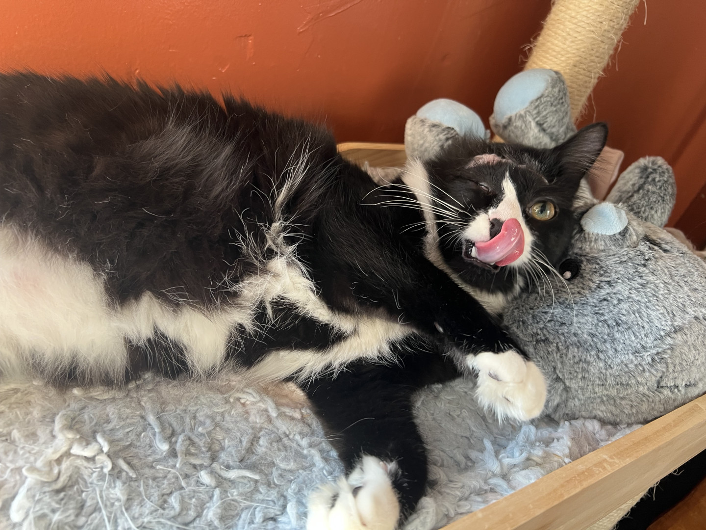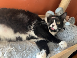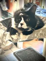 Receive Text UpdatesGrub has an extensive palette and loves to try new things! He gets very excited for his dollop of whipped cream that we share with my morning coffee. Churus and greenies are his FAV cat treats! He loves his stuffed rattle rat, PawsPik interactive cat toy, and his peekaboo cat cave. Honestly he just loves any time playing and sharing with his family!