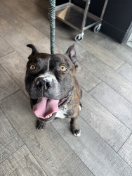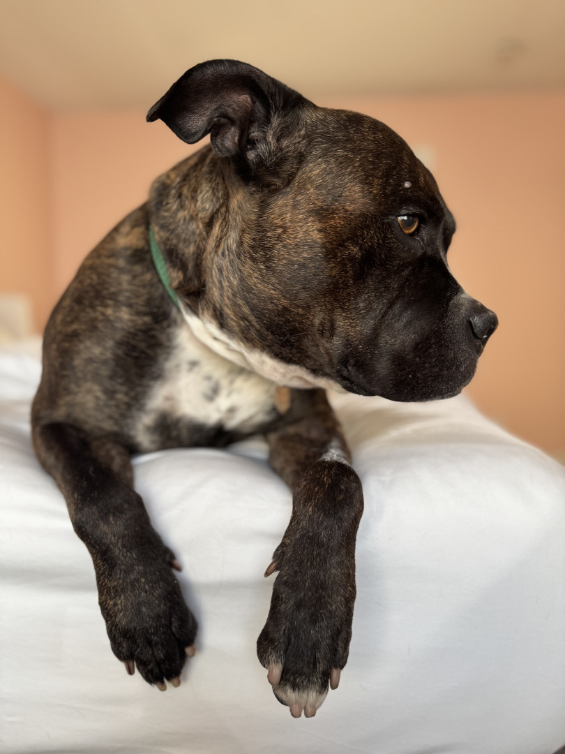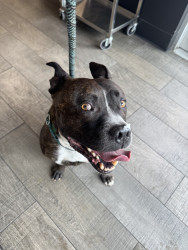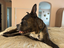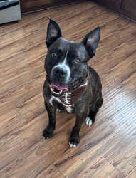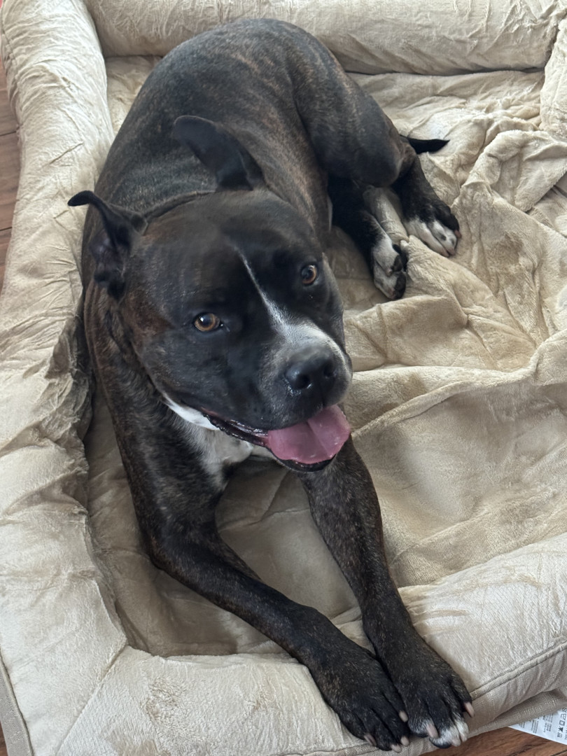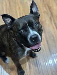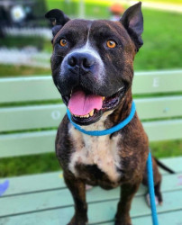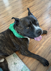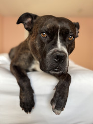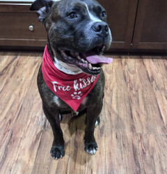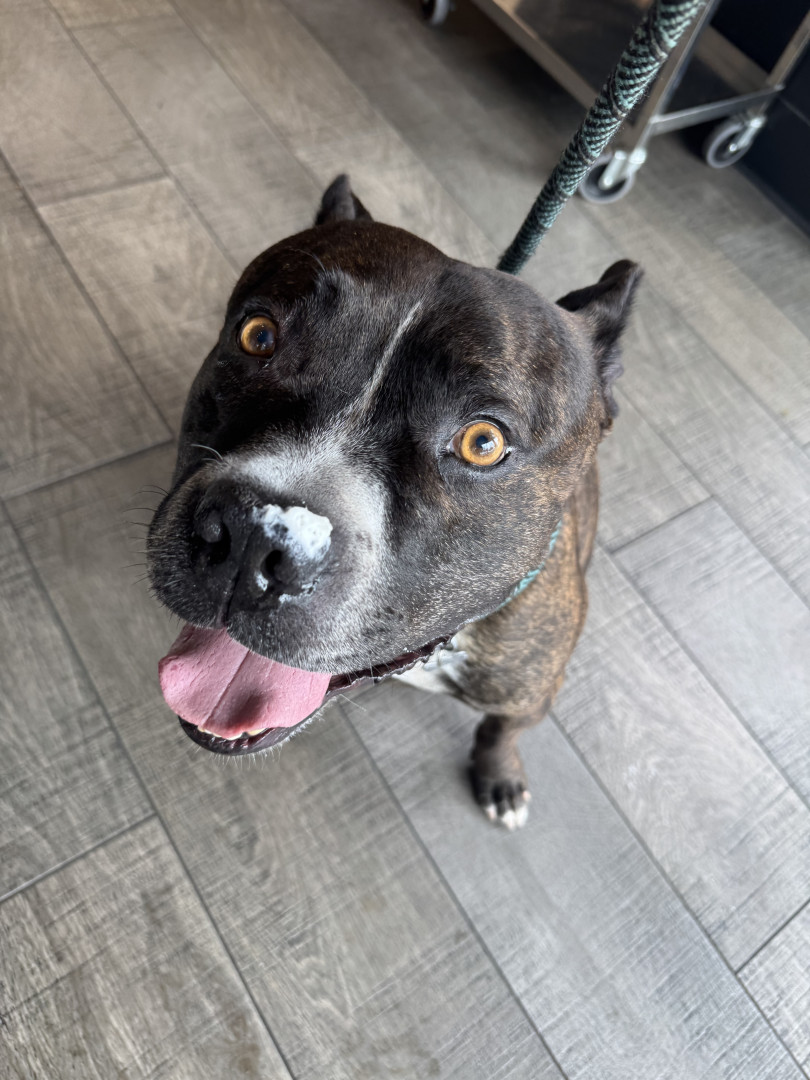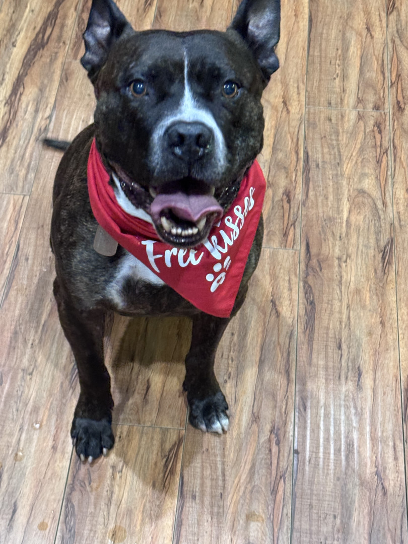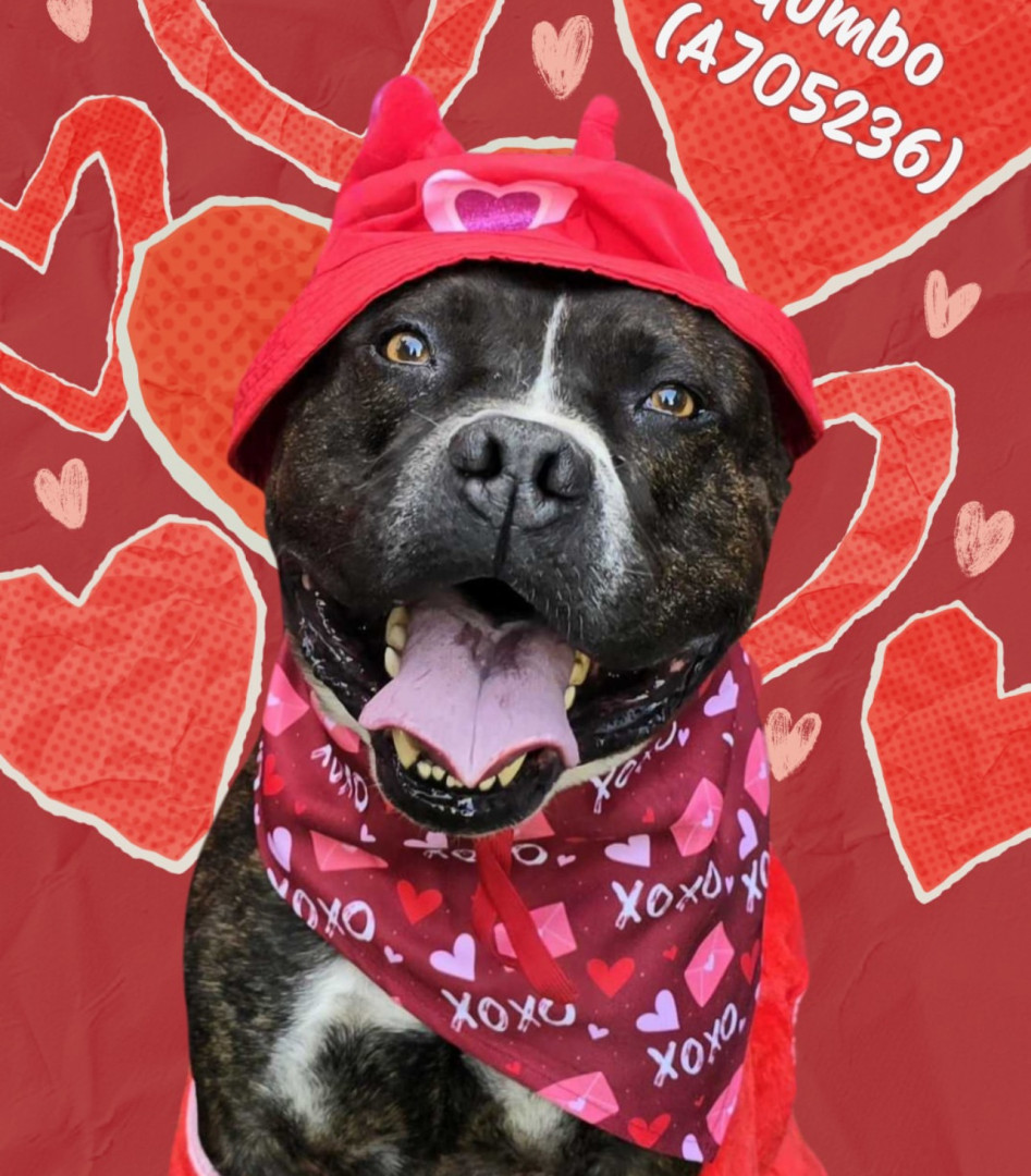 Gumbo, like many large black dogs, went unnoticed in our local shelter for 2 years. He deserves to go from Long Beach Animal Care’s longest resident to America’s Favorite Dog! He is loving, friendly, athletic, fun, and photogenic. Pit bulls often get a bad wrap, but Gumbo will show you immediately that he is a lover, not a fighter. Free kisses are available all day from Gumbo! He also has a charming underbite, a beautiful brindle coat, and is a very photogenic and fashion forward dog.