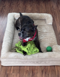 Receive Text UpdatesGumbo becomes wild eyed for anything with cheese. His favorite snack is yak cheese chew. Gumbo loves to chew, wrestle with blankets, jog, and snuggle with mom. He is an undefeated tug-o-war champion and loves an agility challenge... especially for treats! Gumbo got a new green ball for Christmas that I’ve named Wilson because he is looking for it at all times! Wilsoooooooonnnnnnnnnn!!!!!!!