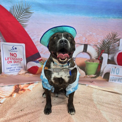 Gumbo is a good mood dude. He was found abandoned in a park with lacerations over 50% of his body, yet he was joyfully jumping around, smiling, and happy to see people. Gumbo does not bark and loves all people as he sees them as an opportunity for more attention!! He’s a positive pup with both a big head and big personality. He is a Fashionisto of sorts, loving to dress up and wear holiday outfits. He recently won a local costume contest and was known at the shelter for having style.