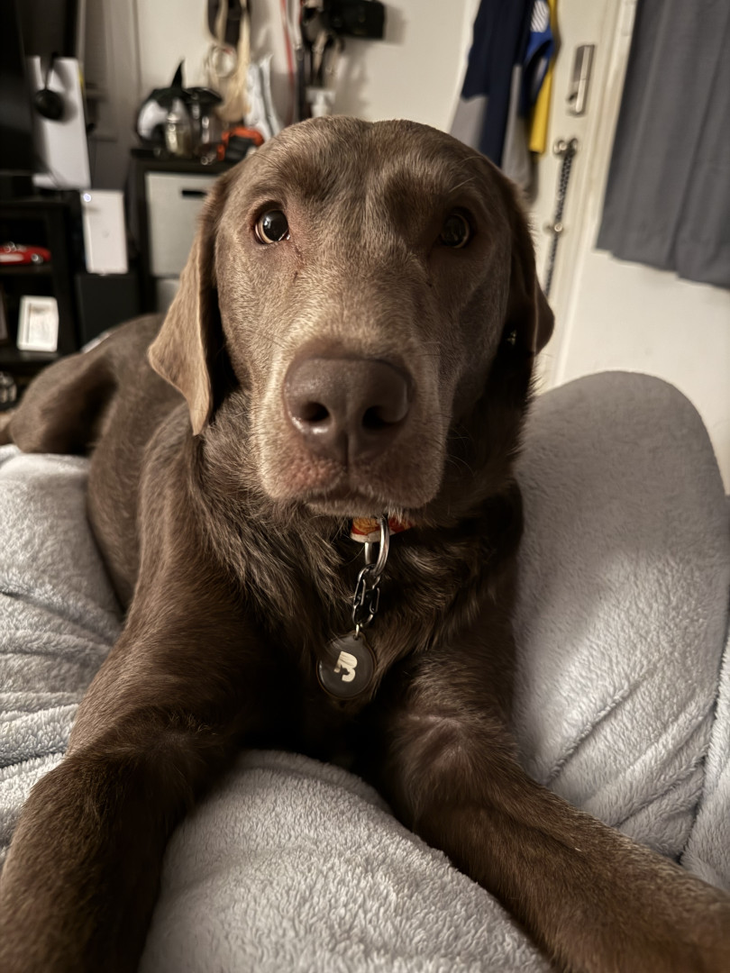 Gunnar is the most loving and cuddly dude. He is obsessed with fetch and likes to talk so everyone knows when he is there and wants pets.