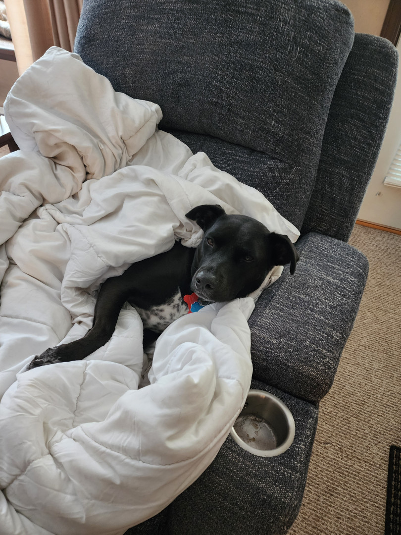 He is so special to us. He is family. He listens well. He don't run off. If I sit he is on my lap. He follows me everywhere.