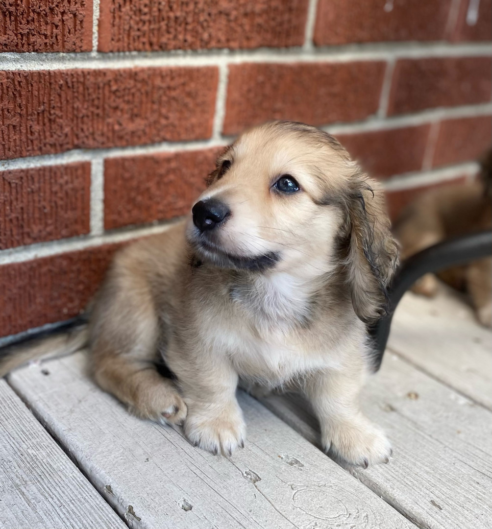 Gus is such a beautiful longhaired dachshund. A great example of his breed. The perfect loyal companion!