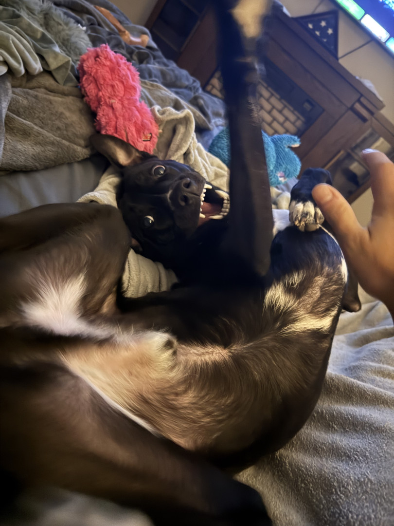 He is powered by zoomies, naps and bad decisions. This 2 year old good plays hard and cuddles even harder.