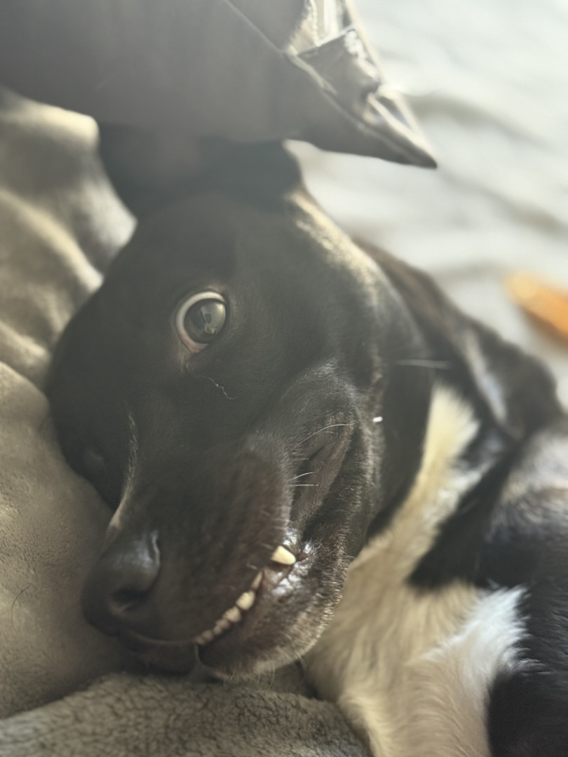 His most unique quality is his commitment to love—goofy antics, expert-level cuddling, and an unstoppable urge to kiss every human he meets, whether they’re ready or not