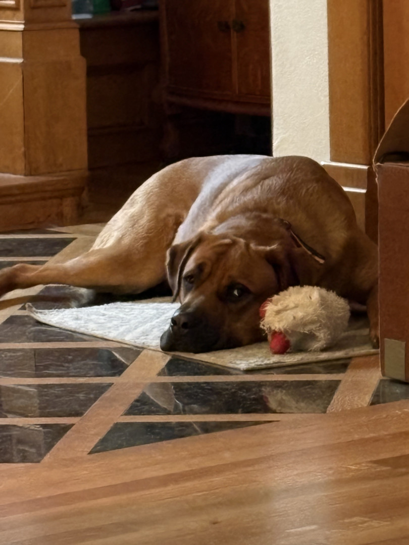 Gus is a 14 month old St. Weiler (St.Bernard/Rotweiler). He's a wonderful, smart, snuggly pup!
