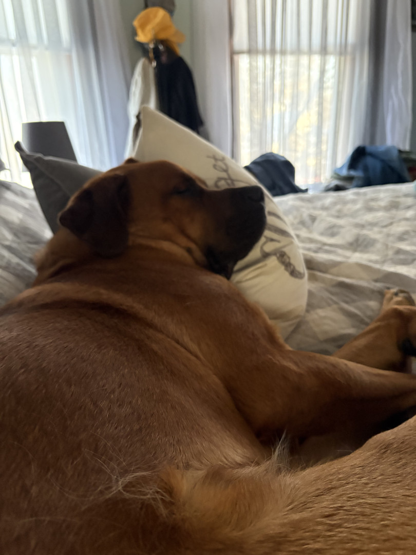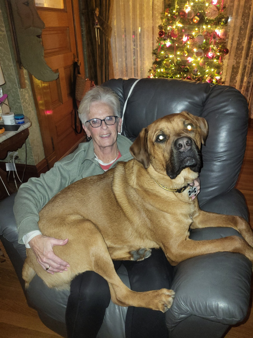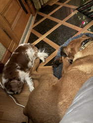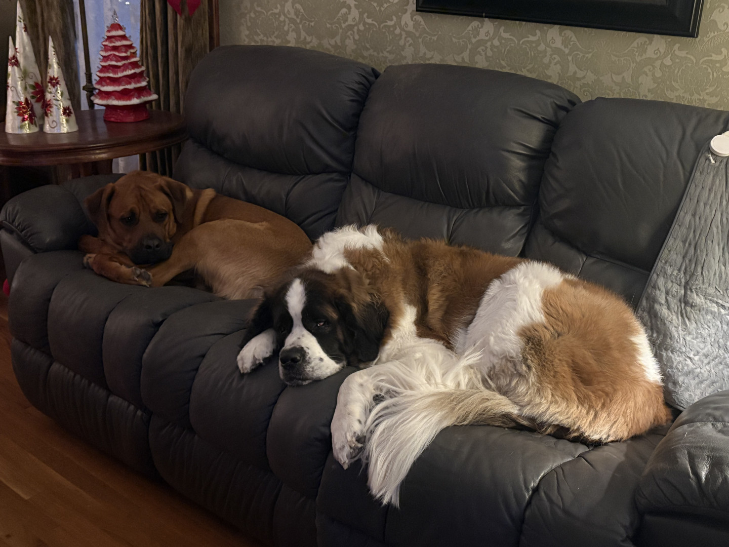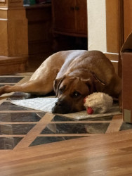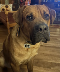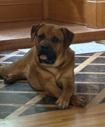 Gus' personality is what makes him so special! He's very social. Loves to go for walks and meet new people and other dogs. Gus loves his people and thrives on being at our feet or snuggled up on the couch or in bed with us. Gus is also kind of a unique breed, St. Weiler (St. Bernard/Rotweiler) When we couldn't find a breeder in the Midwest where we live, we flew to Syracuse, NY to bring home our new best friend . He was the hit of the airports and everywhere he goes he turns head.