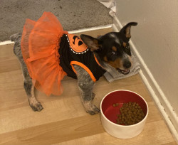 Gypsy knows how to walk on her back two legs she knows how to dance sit pretty, and she loves her trick that I taught her to jump into my arms from the ground. Everybody always gets a kick out of that trick.