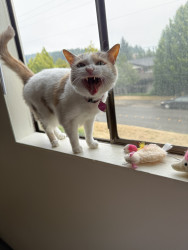 Her voice is most unique, she screams all the time with a rasp to it. She as well is a Lebanese kitty, her parent was living in Lebanon and adopted her. “Hadiyeh” means “gift” in Arabic. She is a world traveler, even though grumpy at times she has always loved any place she has lived.