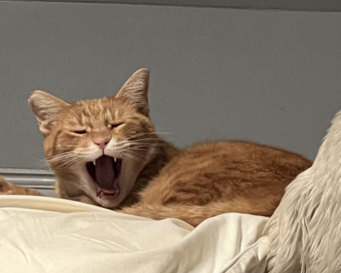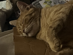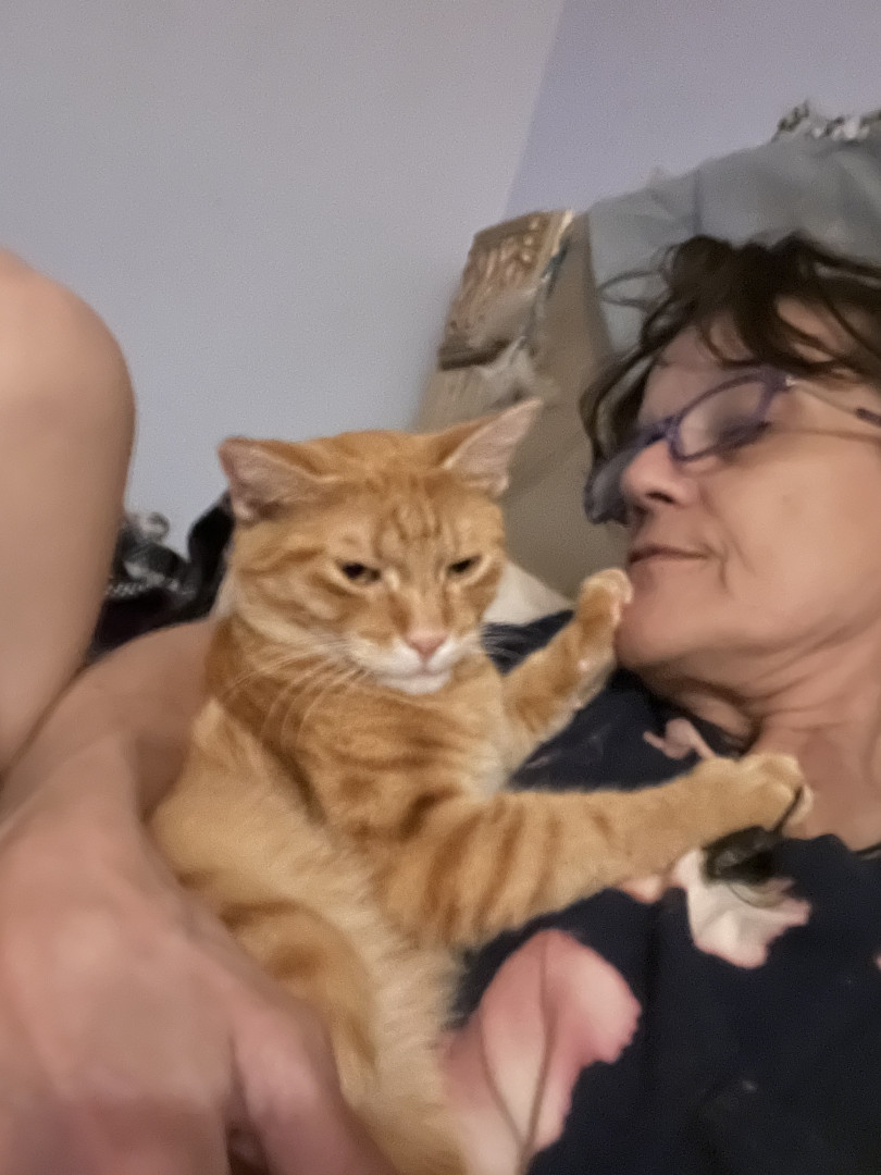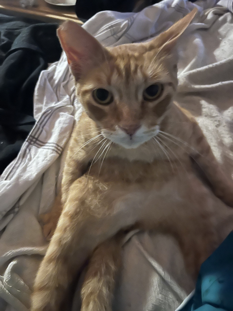 Houdini is an orange tabby, feral rescue that refused to be released and insisted on returning home with me.