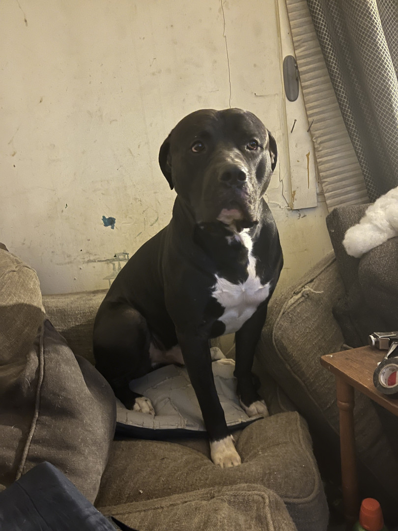 She is an American bulldog and she's loving and a very smart dog very affectionate