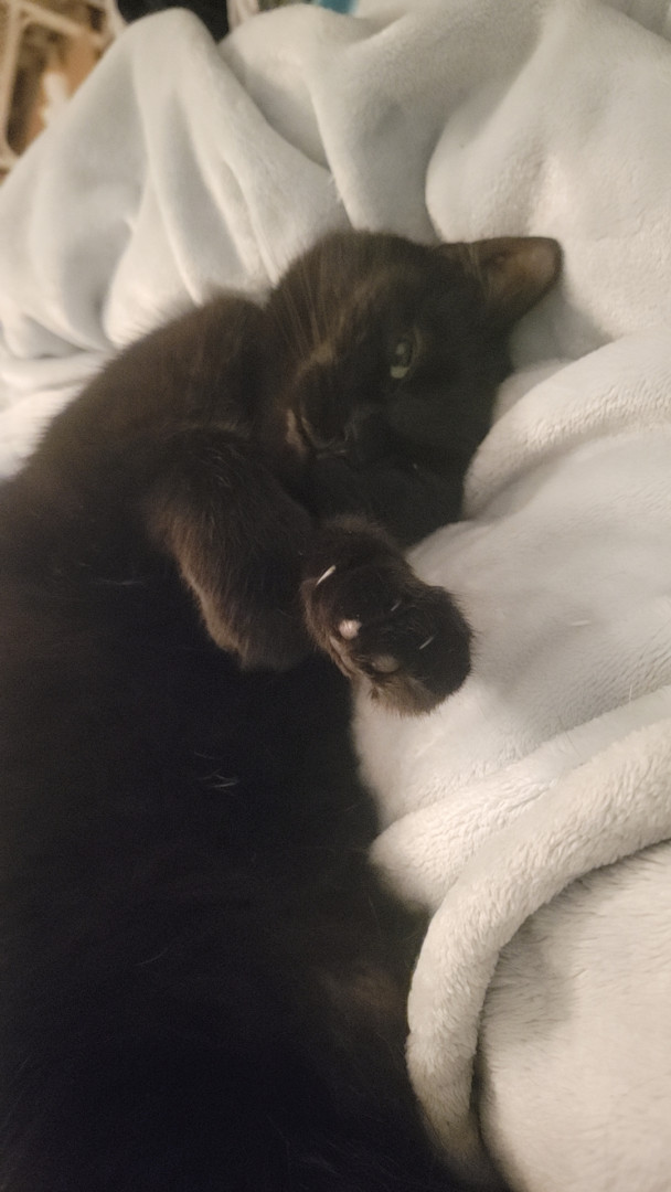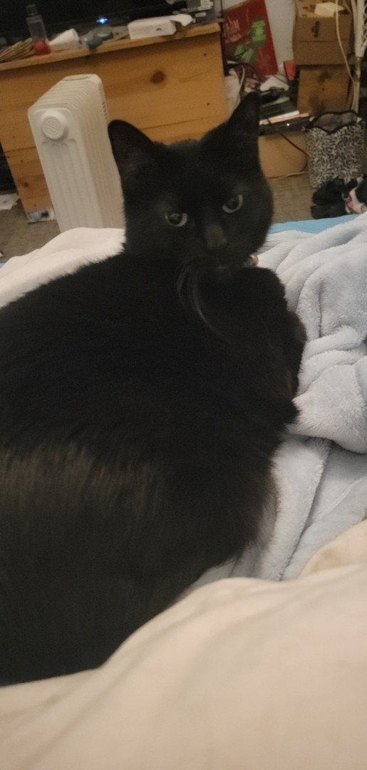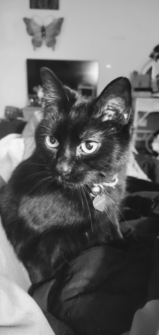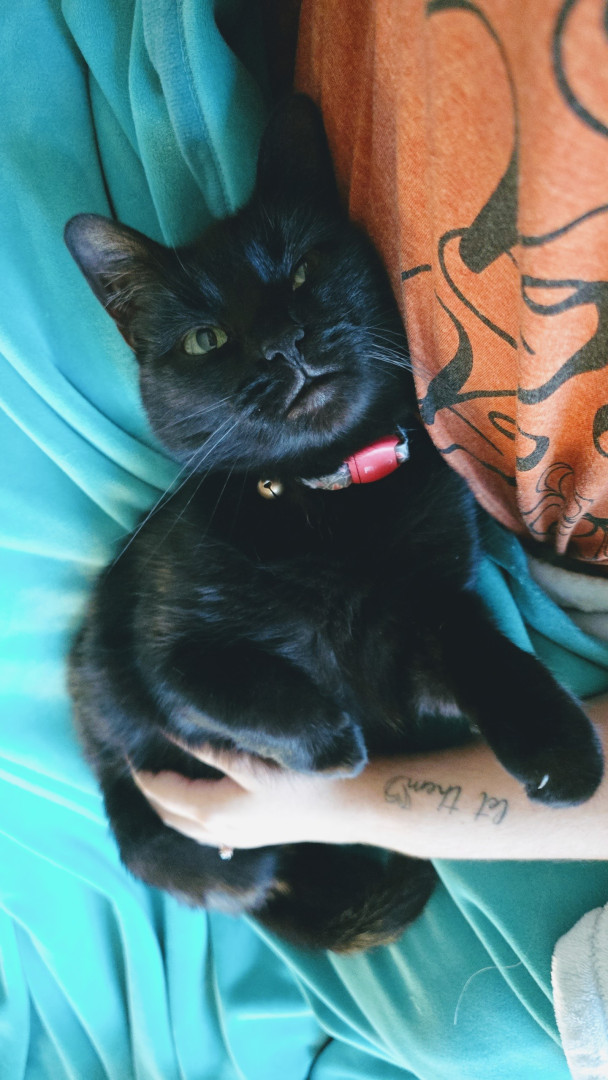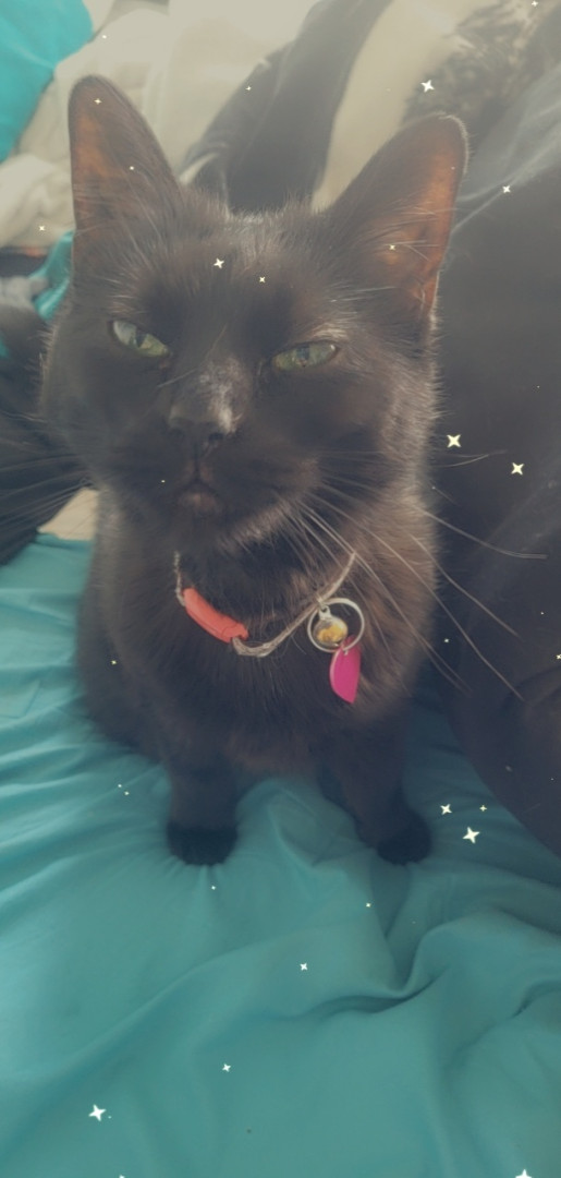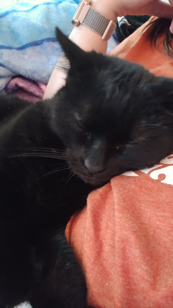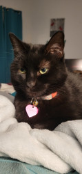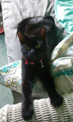 Halloween is a 6 year old fully black cat born in Ocotber which is how she got her name. She's a very happy and loveable cat and loves t