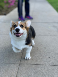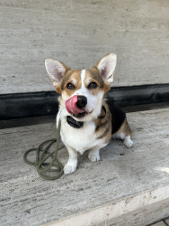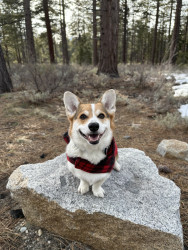 Hammi is a 32-lb corgi adventurer: well-traveled, snack-motivated, ball-obsessed, and famous for his happy awooos.