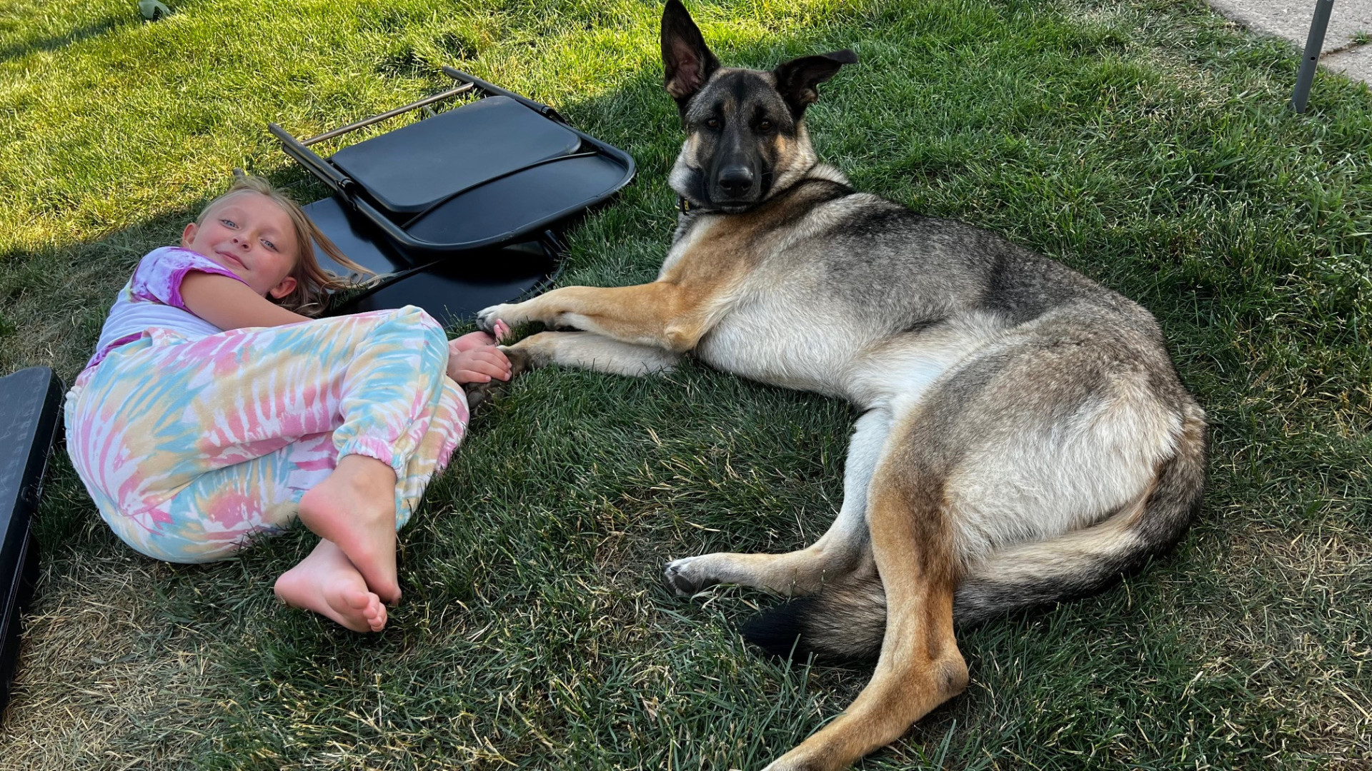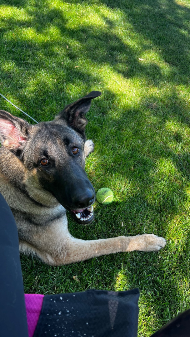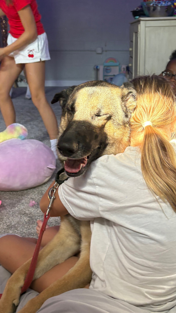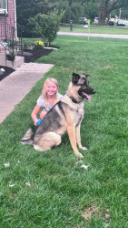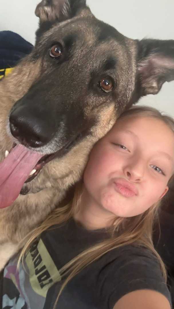 He is a German Shepard boy who loves his kids and family. He loves to play fetch and snuggle with his family and friends!