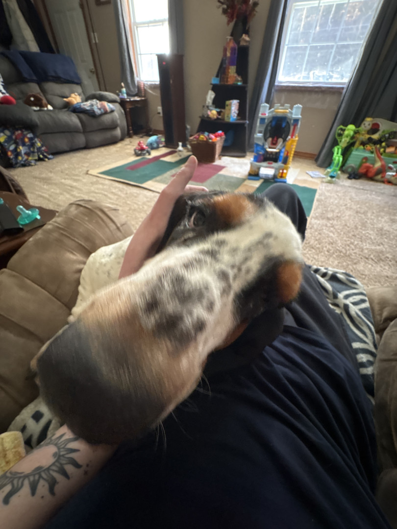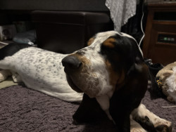Hank is a loving and sleepy basset hound that loves to eat! His favorite food is sausage and his favorite toy is his rope.