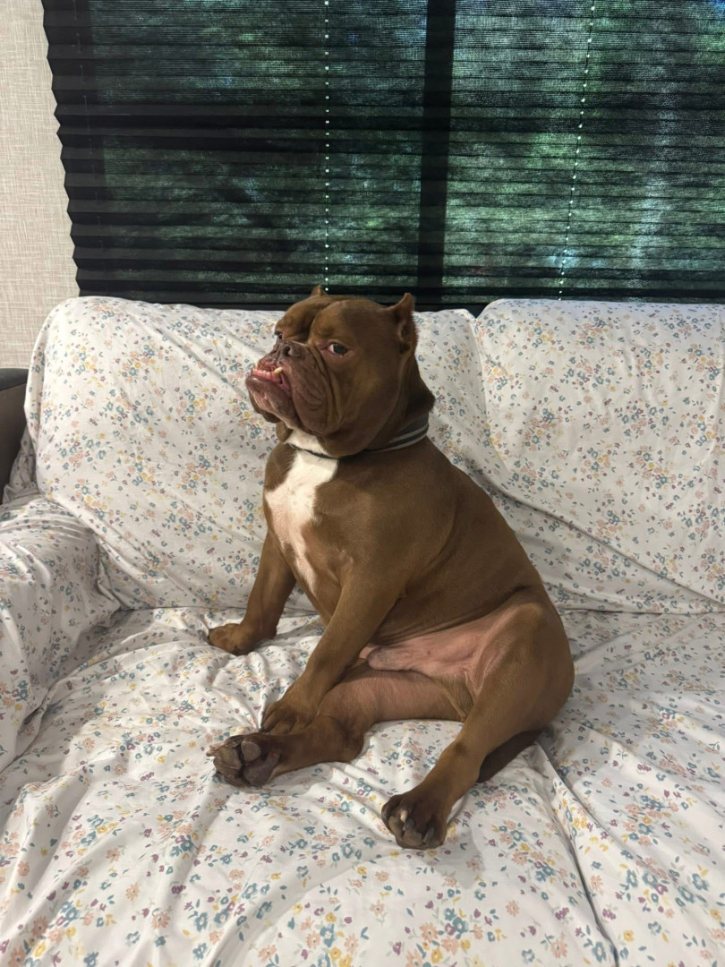 A bulldog who thinks he’s a mini horse at times, but also sweet/loving/sloppy!