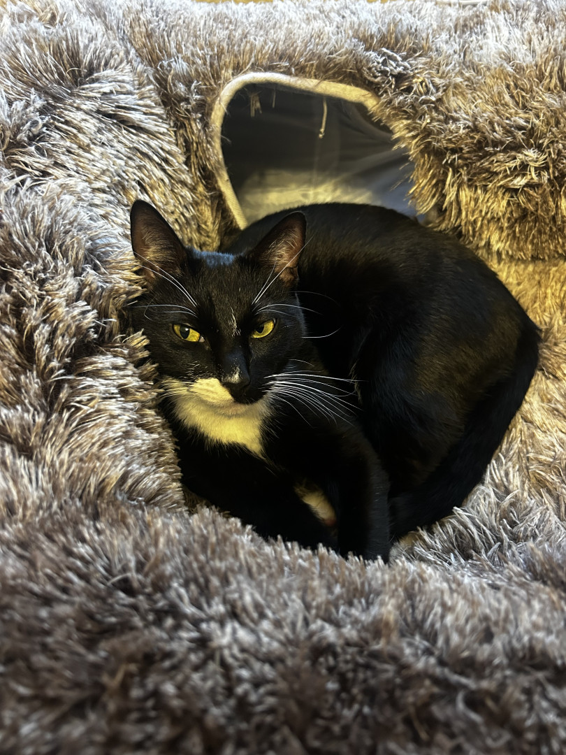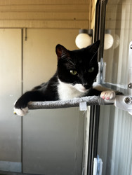 Hank loves to play and cuddle with his orange brother, Rusty. He meows like a kitten, loves to go crazy with his toys, and likes to be held.