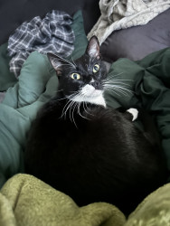 Learn MoreHanks favorite toy are little stuffed mice. He will drop it in front of you and wait for you to throw it like a dog playing catch. He also goes feral for fish bite treats.