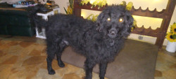 He's an adorable 2-year-old rescue from the SPCA best guess by chat is that he is Portuguese water dog and standard poodle.