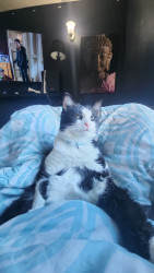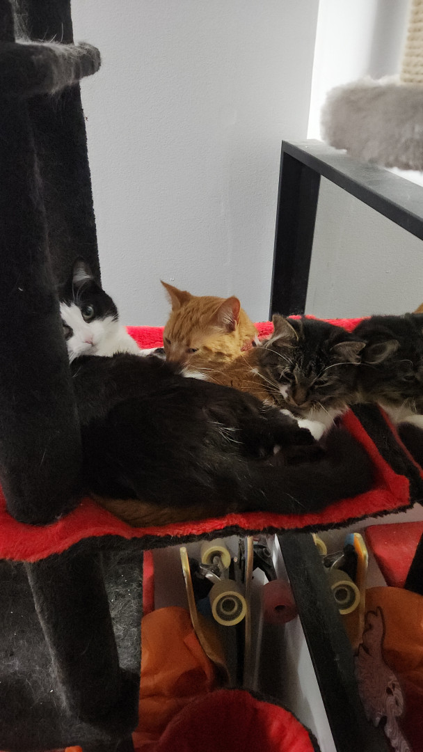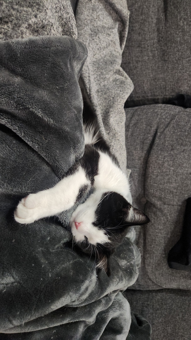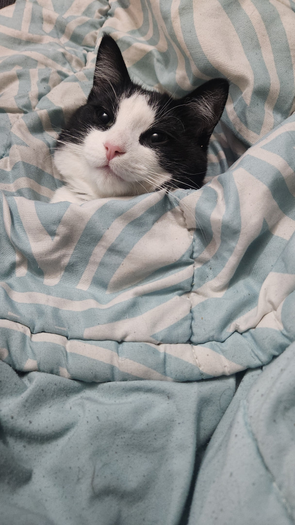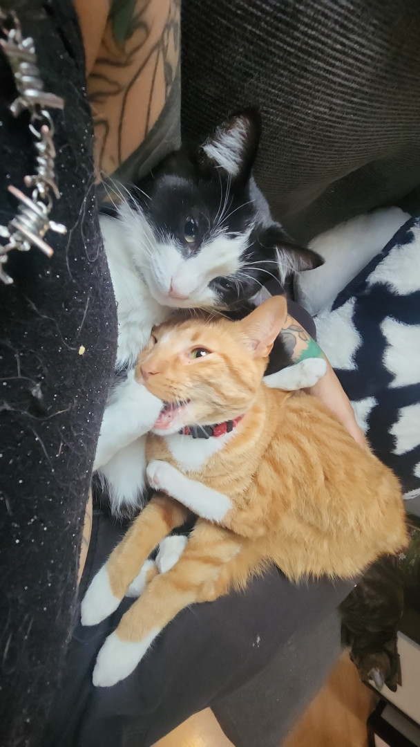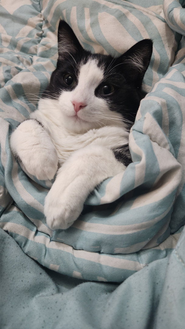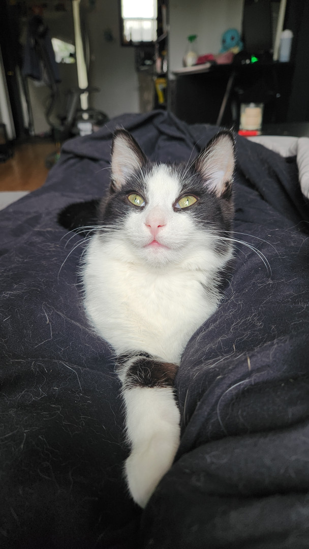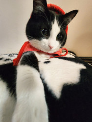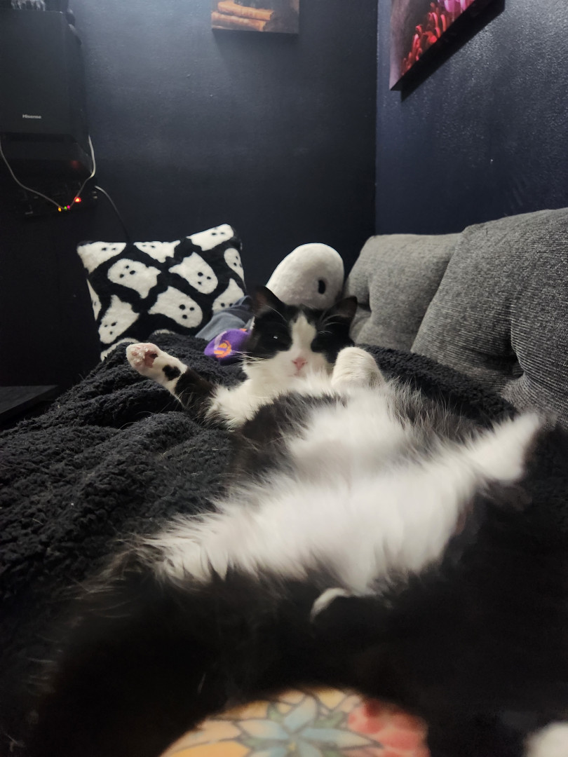 Happy was a stray kitten who gave me his trust right off the bat. His ability to trust and un wavering love for his family are great qualities. His romantic tactics and charisma is purrrrect to say the least. Once you lock eyes with this little romeow you'll surely fall in love. His name is happy after all, so of course happiness comes when ever he's around. He's just "happy" to be anywhere there is love.