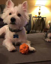 He loves lamb chop toys, he carries them in his mouth and walks around the house slowly. As if he is carrying around his own pup.