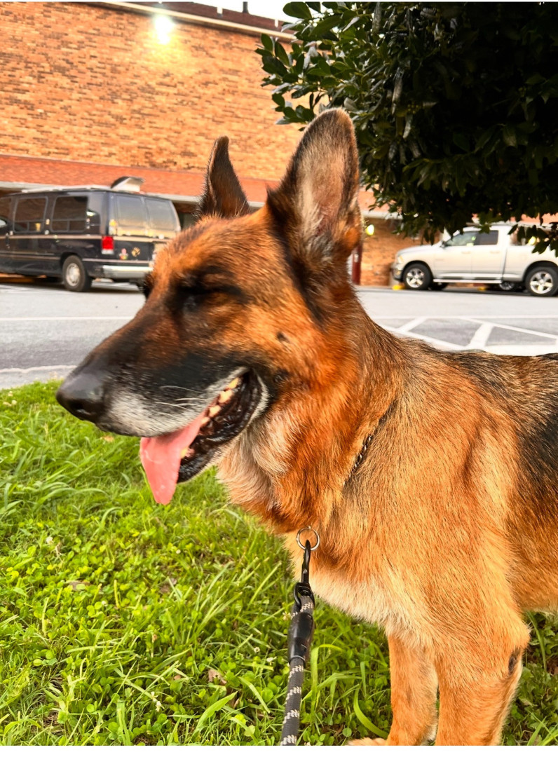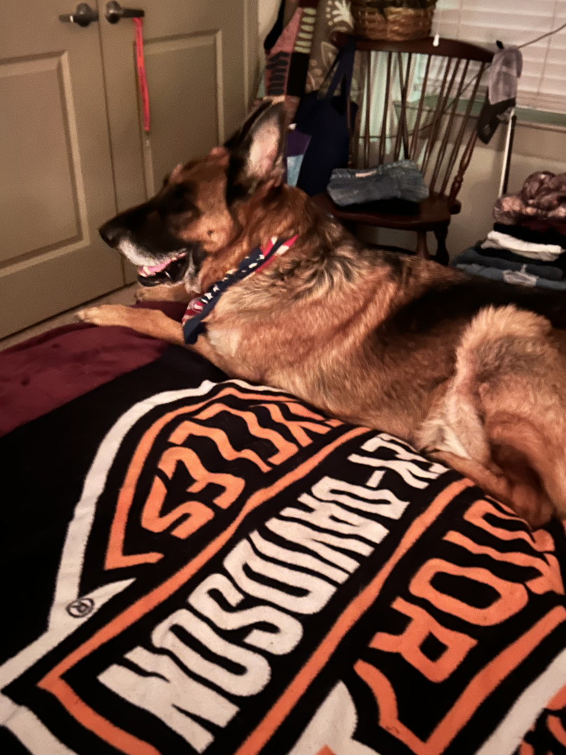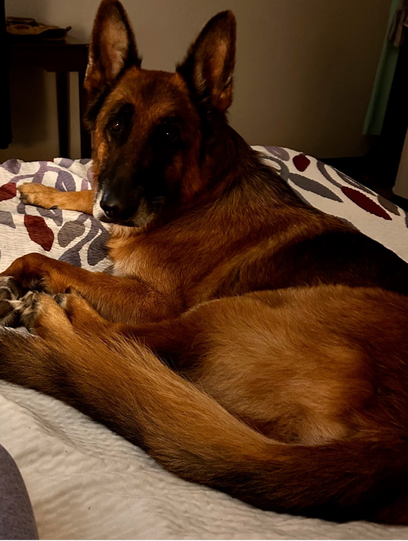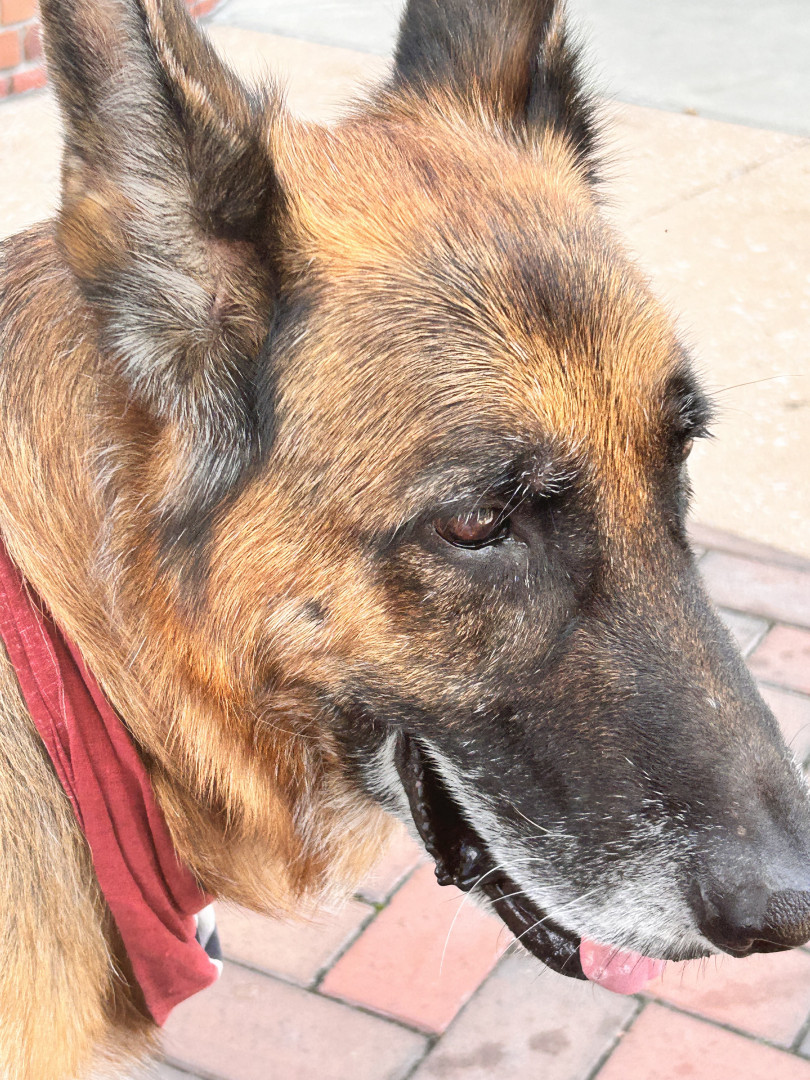 He’s a beautiful, service dog that I inherited from a gentleman that I took care of. He’s one of a kind & he steals the spotlight no matter