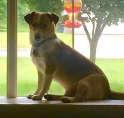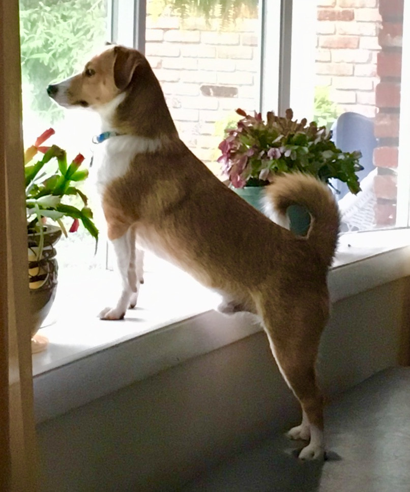 He was our first rescue. Jack Russell, Sheltie mix. He is a cuddle bug but he will bark to defend his turf.