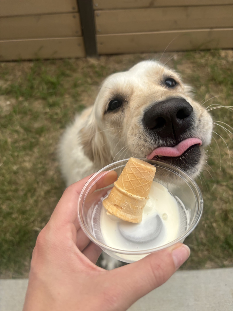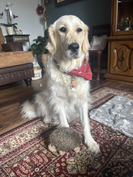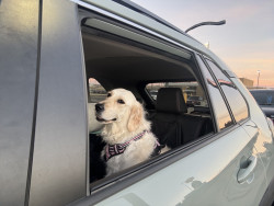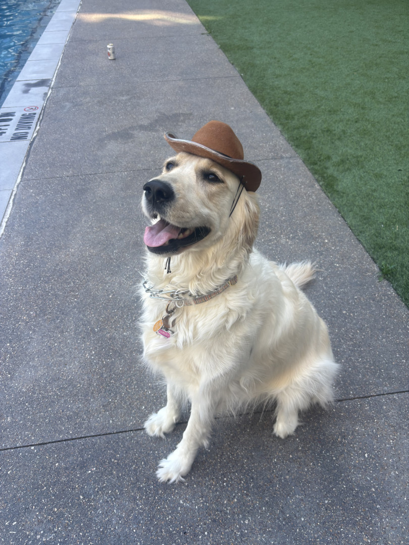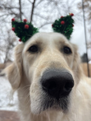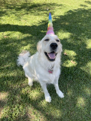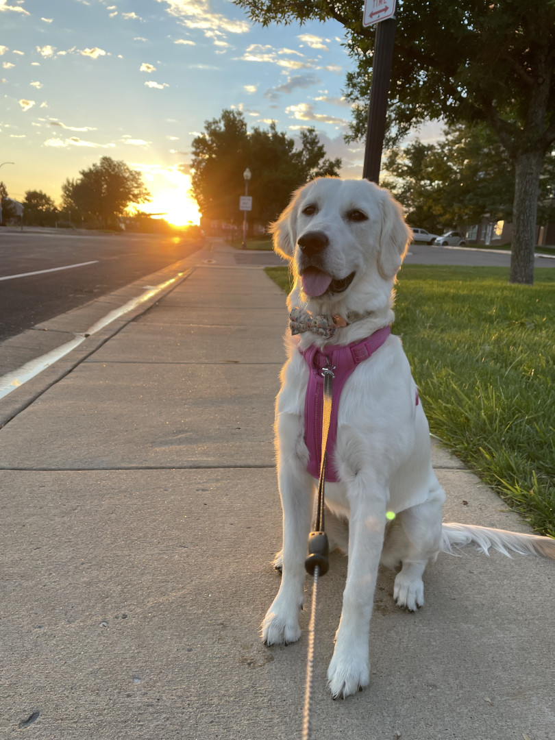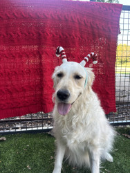 Playful white golden retriever with a big personality, a love for dressing up, and a smile that wins hearts wherever she goes 🐾✨