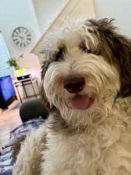 Harley is a funny pup with leadership and herding traits. He loves people. But most of all my son Austin. Harley is his dog and sleeps and follows him everywhere. He loves his sibling puppies. He always is smiling and being goofy. Curious about everything.