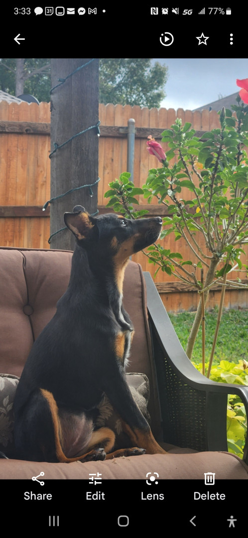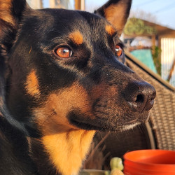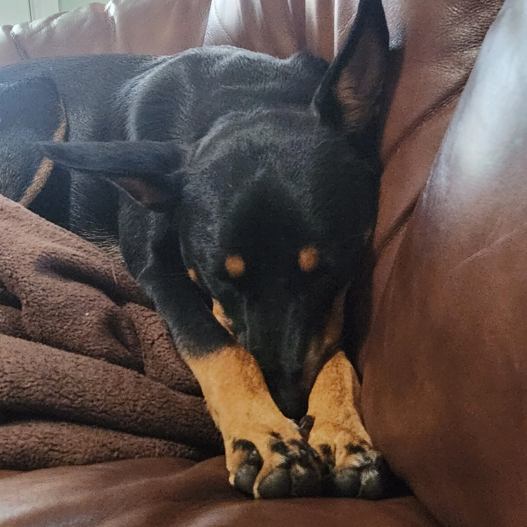 Harley is full of infectious energy, incredibly intelligent, loves to chase squirrels & be tucked in at night with her blanket & pillow.