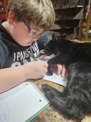 His unique quality is the way he likes to snuggle, meows to get what he wants especially if we aren't following the 'routine', and when you get something out to work on he will sit right in the middle of it.