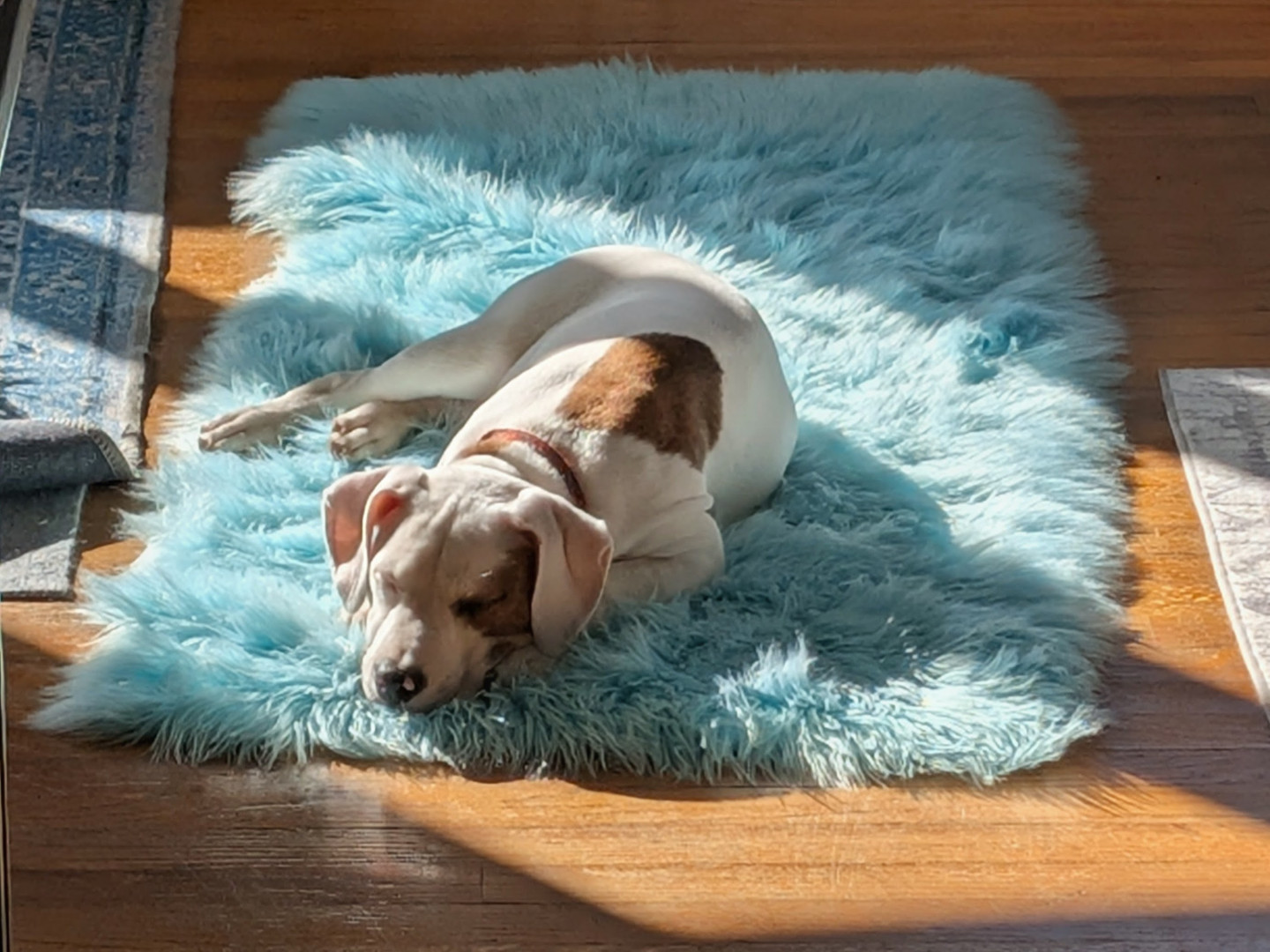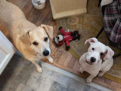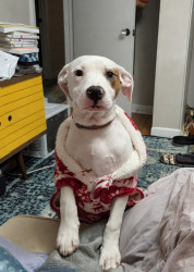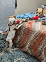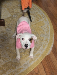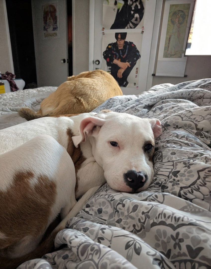 Harlow embodies america- a mixed pit, loving and a survivor. She was dumped & found scavenging in Tennessee. She has settled in to her new home like she has always been here. She's a good reminder of all the wonderful dogs out there that need homes.