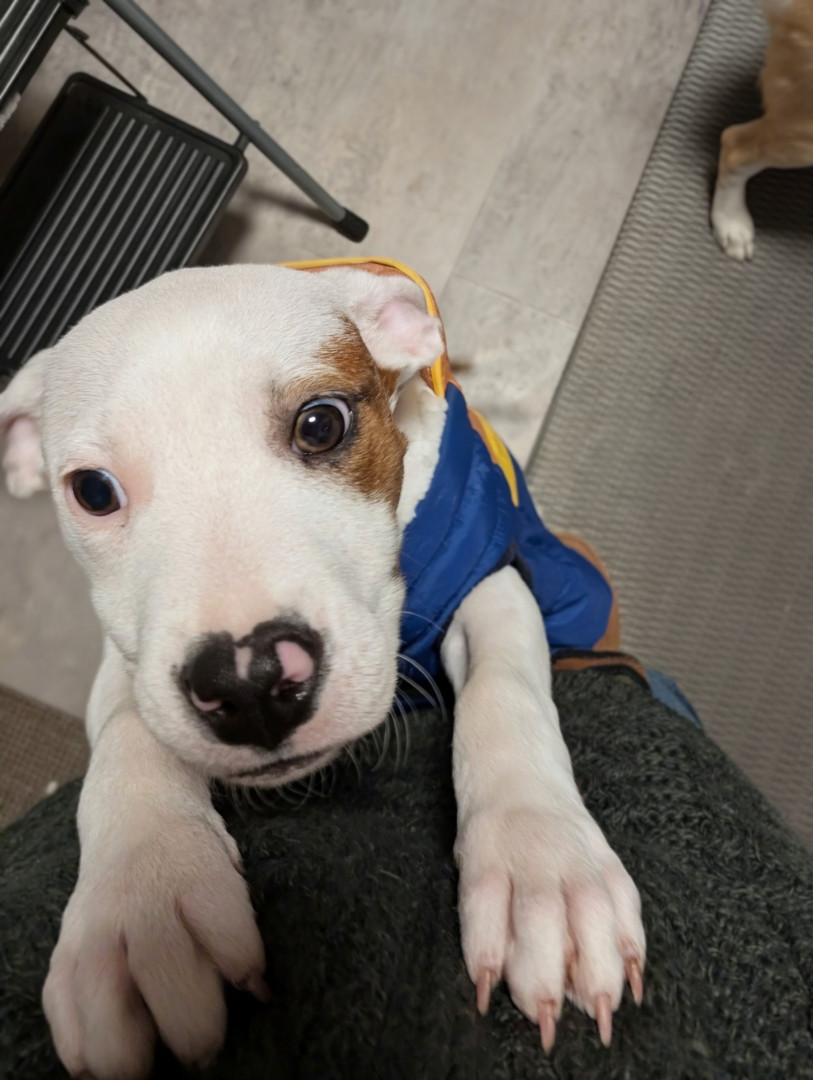 Still a pup but a very protective one. This am she growled at the snow.