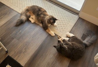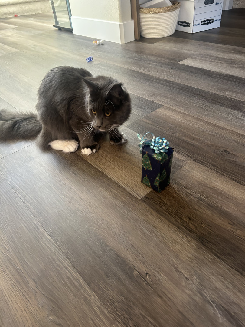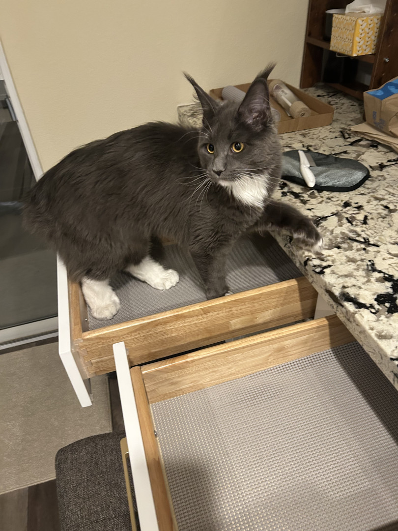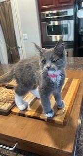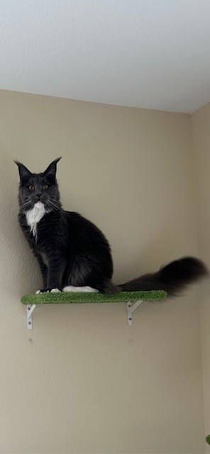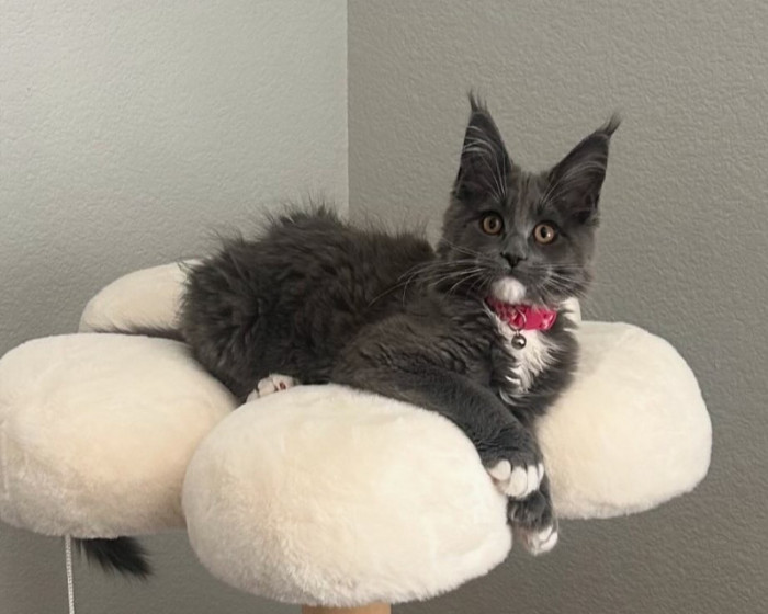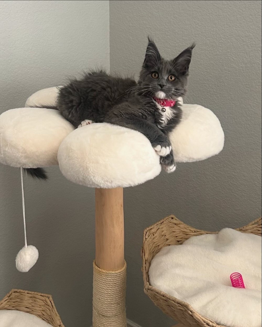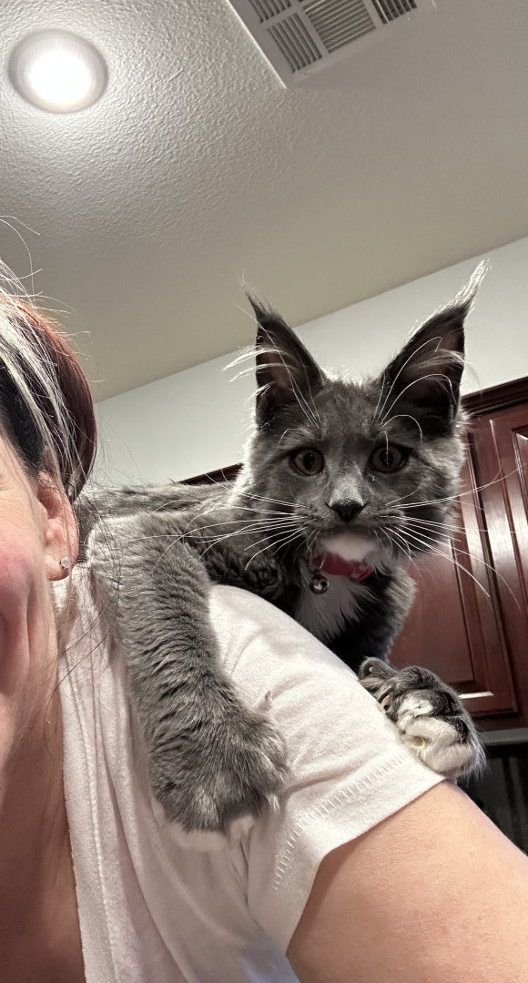Learn MoreHarpurr's favorite toy is the mounted laser, when she hears it turn on she comes a running. She will chase that laser dot all over their playroom until the timer stops. If you have a Qtip, hide it. Miss Harpurr loves stealing Qtips out of every canister. Harpurr also loves just playing and chasing her older sister (Garland Hope) who is also a Polydactyl Maine Coon, but only on her front paws (she has thumbs). The girls' favorite go to treat is boiled chicken that they get 2x a day.