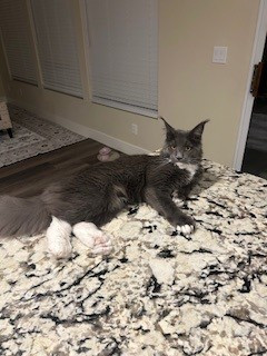Harpurr Marie is an 11th month old Extreme Polydactyl Maine Coon. This means that all 4 paws have 6 or more toesies. 🐾