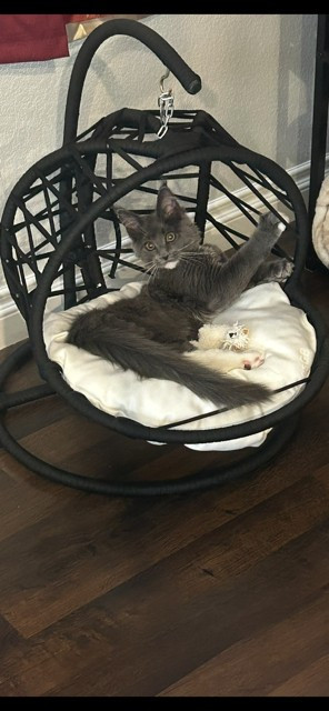 Receive Text UpdatesHarpurr's favorite toy is the mounted laser, when she hears it turn on she comes a running. She will chase that laser dot all over their playroom until the timer stops. If you have a Qtip, hide it. Miss Harpurr loves stealing Qtips out of every canister. Harpurr also loves just playing and chasing her older sister (Garland Hope) who is also a Polydactyl Maine Coon, but only on her front paws (she has thumbs). The girls' favorite go to treat is boiled chicken that they get 2x a day.