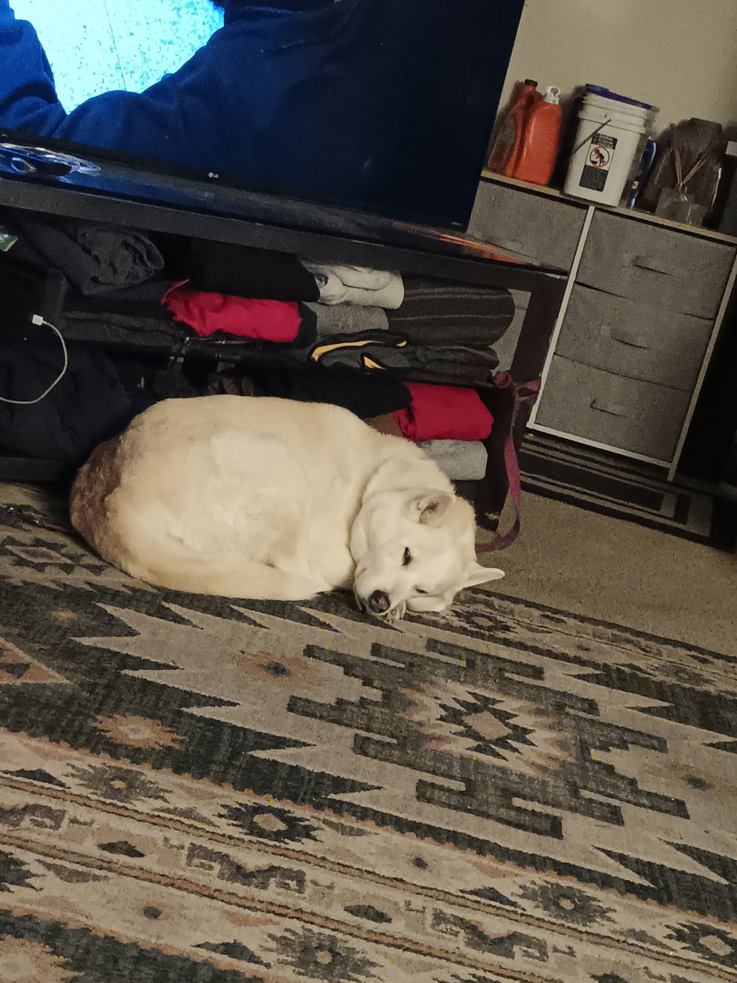 Hatchi is most indoor dog sleeps most of the day in her bed, everyone loves her and she love them too