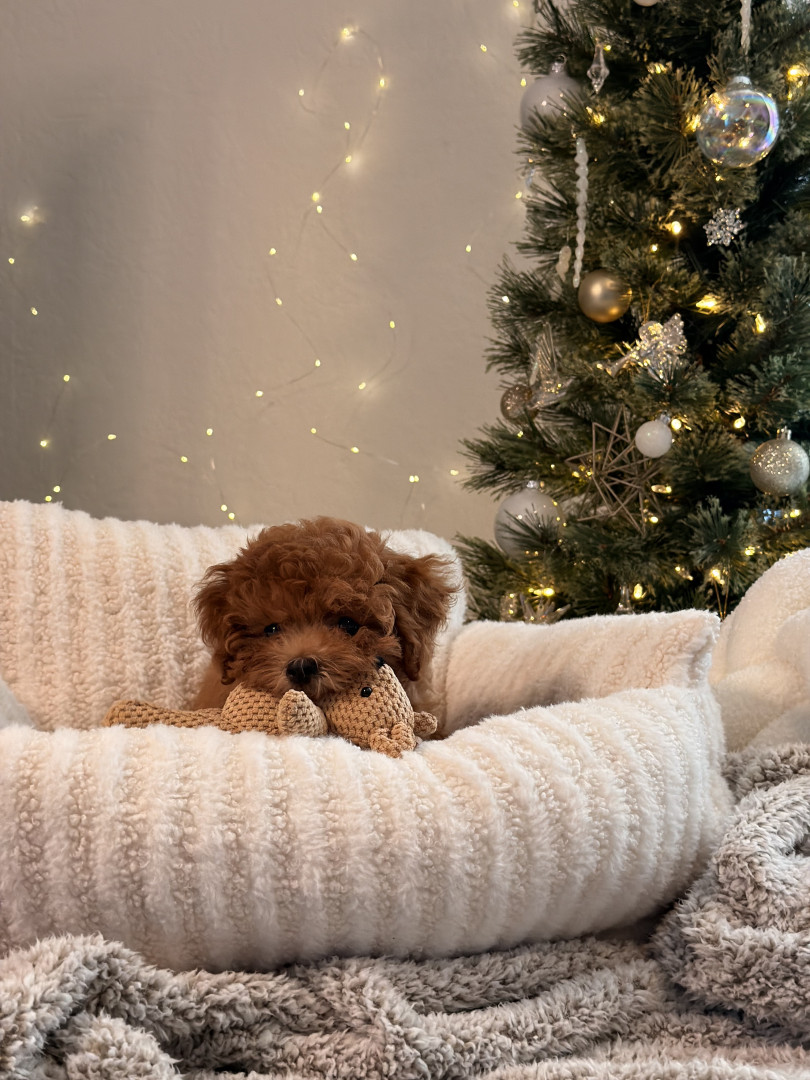 Hazel's most unique quality is her ability to connect instantly with people. She's gentle, intuitive, and loving, always knowing when to bring comfort, joy, or a playful spark. Her sweetness isn't just seen it's felt.