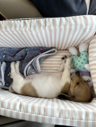 Hazel is the most affectionate, noisy, curious young dog ever! She loves to be right with me every minute of the day and loves everyone!