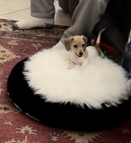 She likes to watch tv, especially late at night when we are in bed. But don’t let someone wearing black walk toward us on that tv b/c the Dach-o-Rex will come out then and wake up daddy! Her other unique quality is all 11 lbs of her adores really big dogs-like Cane Corso-sized dogs..thinks they’re so fun to play with and lets them put her in their mouths like she is a chew toy🤣