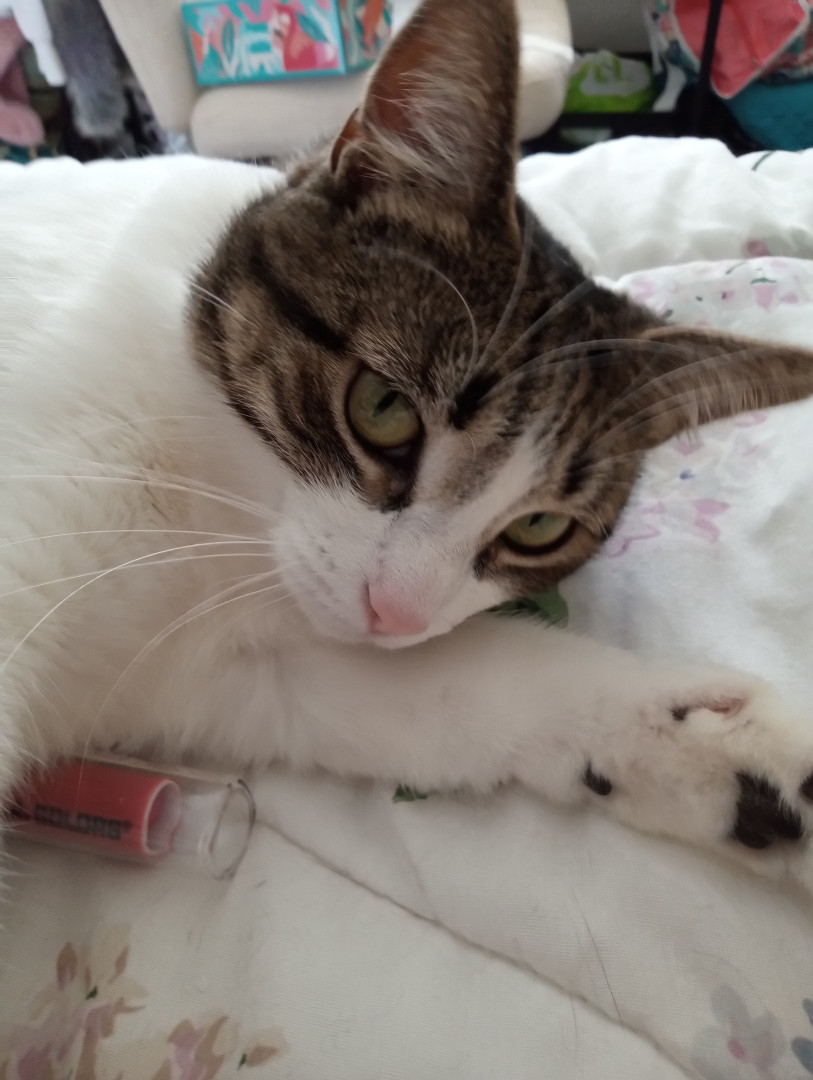 Hazel is a little tabby cat π I adopted a few years ago. She is the best Friend and snuggler anyone could ask for. She's my love π