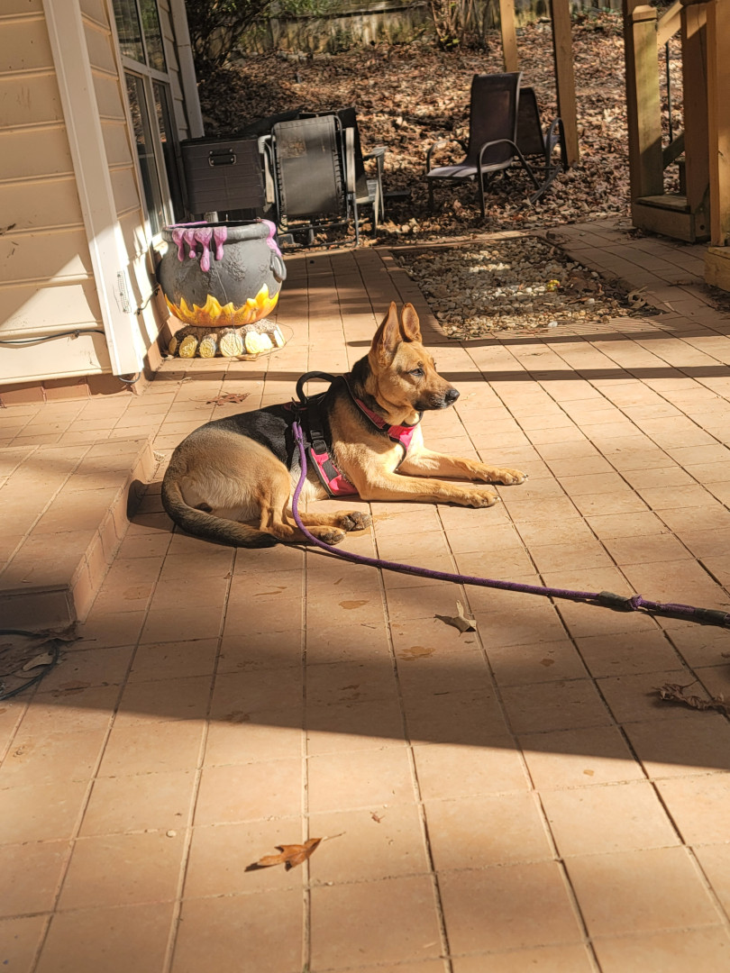 She is a mix German and she is 2.5. Very playfully ond full off energery! Her personally matches her! She loves playing fetch and tummy time